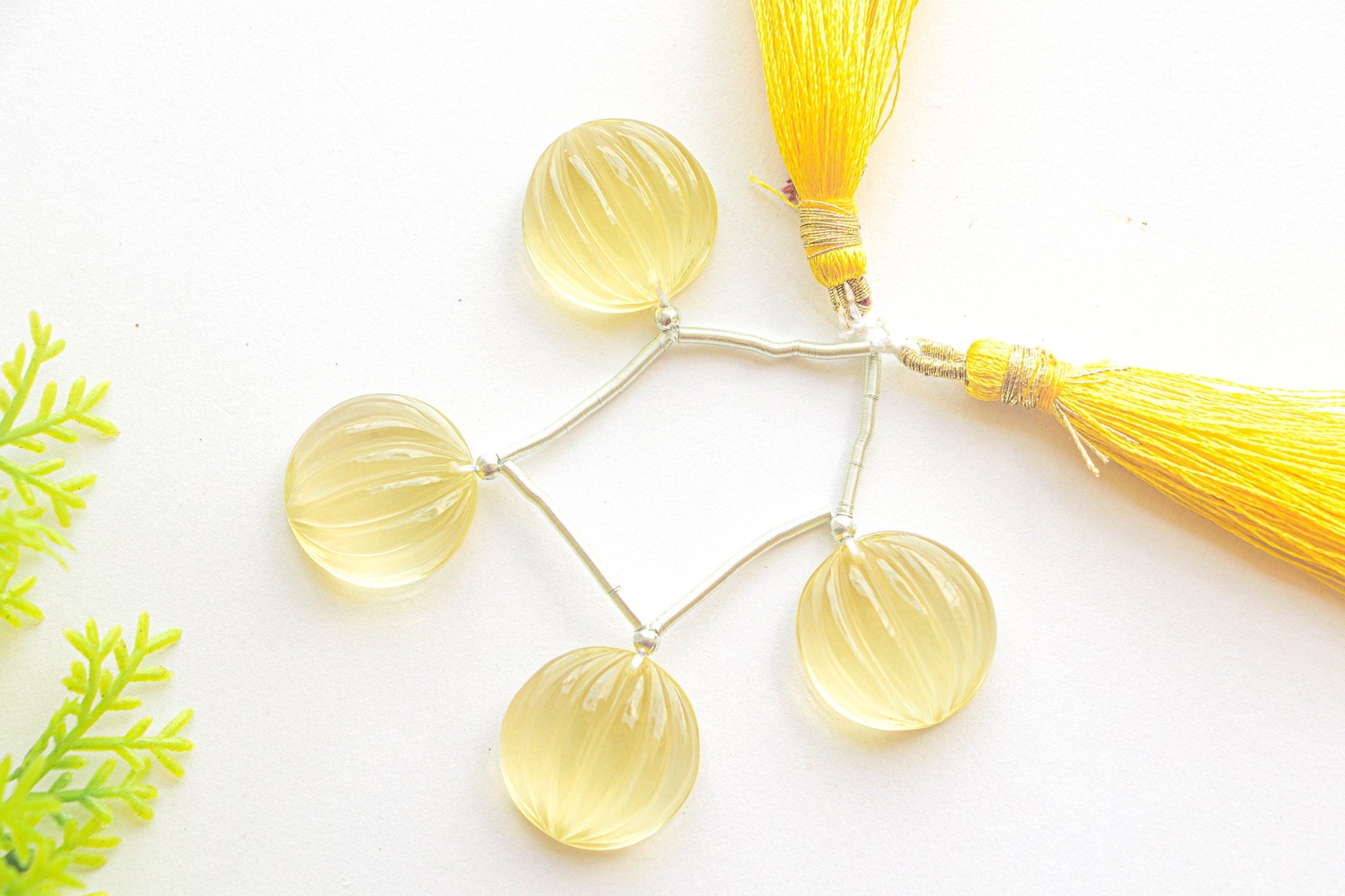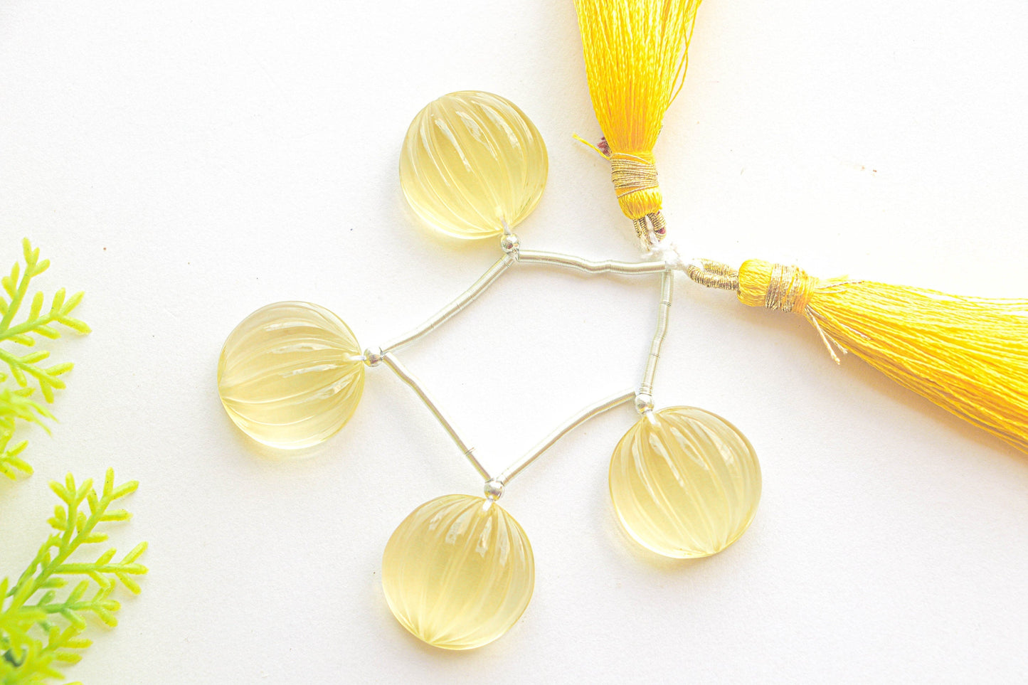 Natural Lemon Quartz Flat Back Melon Carved Beads | 18x18mm | 4 Pieces | Natural Gemstone | Beadsforyourjewellery