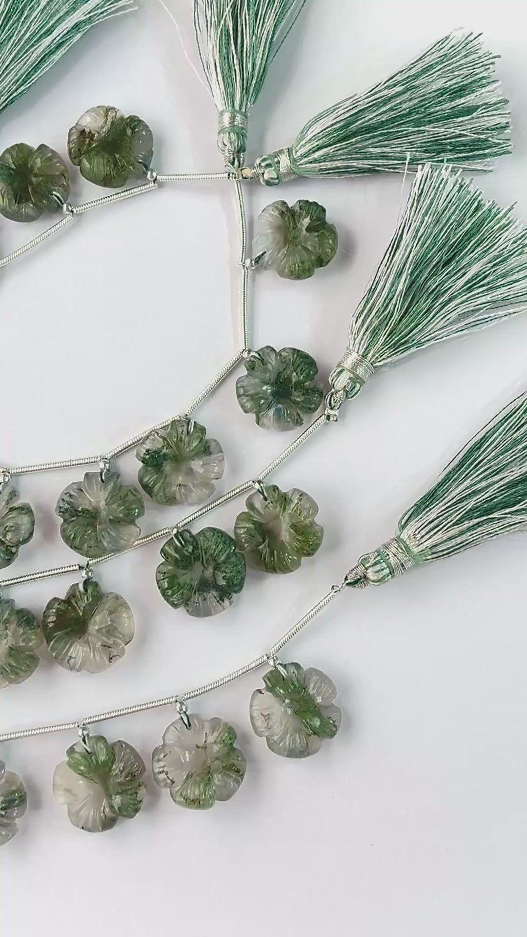 Natural Moss Agate Flower Carving Beads, Moss agate carved beads, moss agate beads, Flower carved beads for jewelry making, 10 Pieces