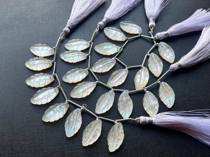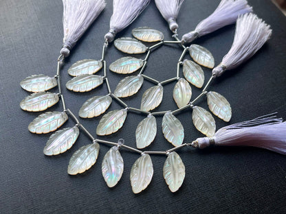 iridescence effect, Natural Mother of Pearl and Crystal Doublet leaf carving beads, Hand carved gemstone beads for jewelry making, 10x20mm