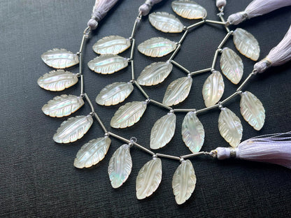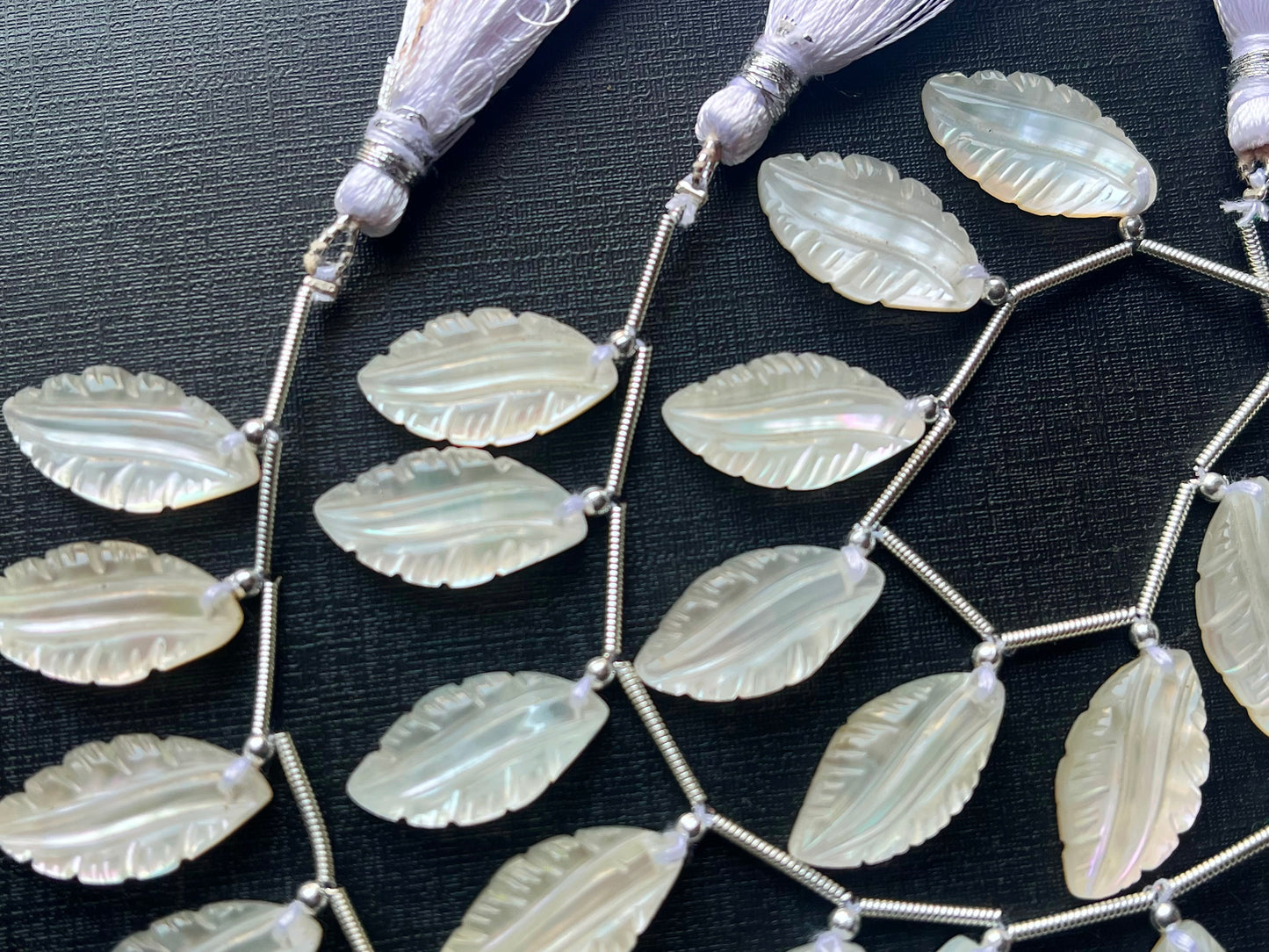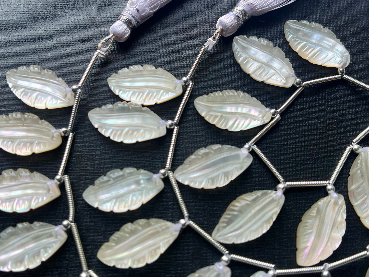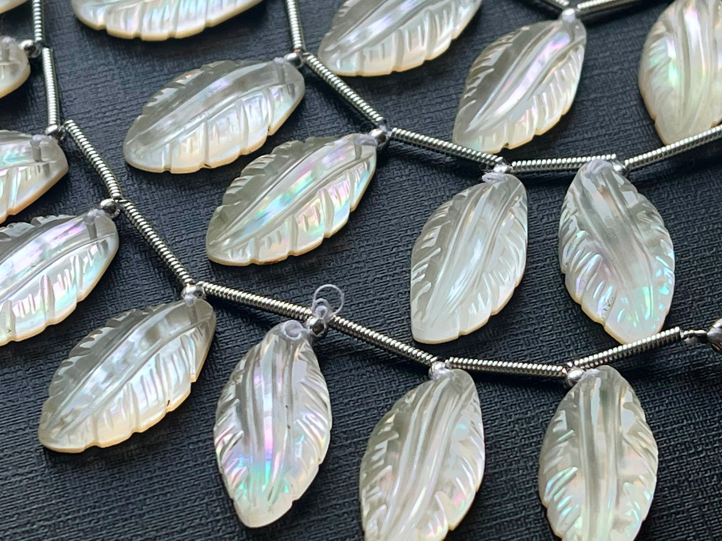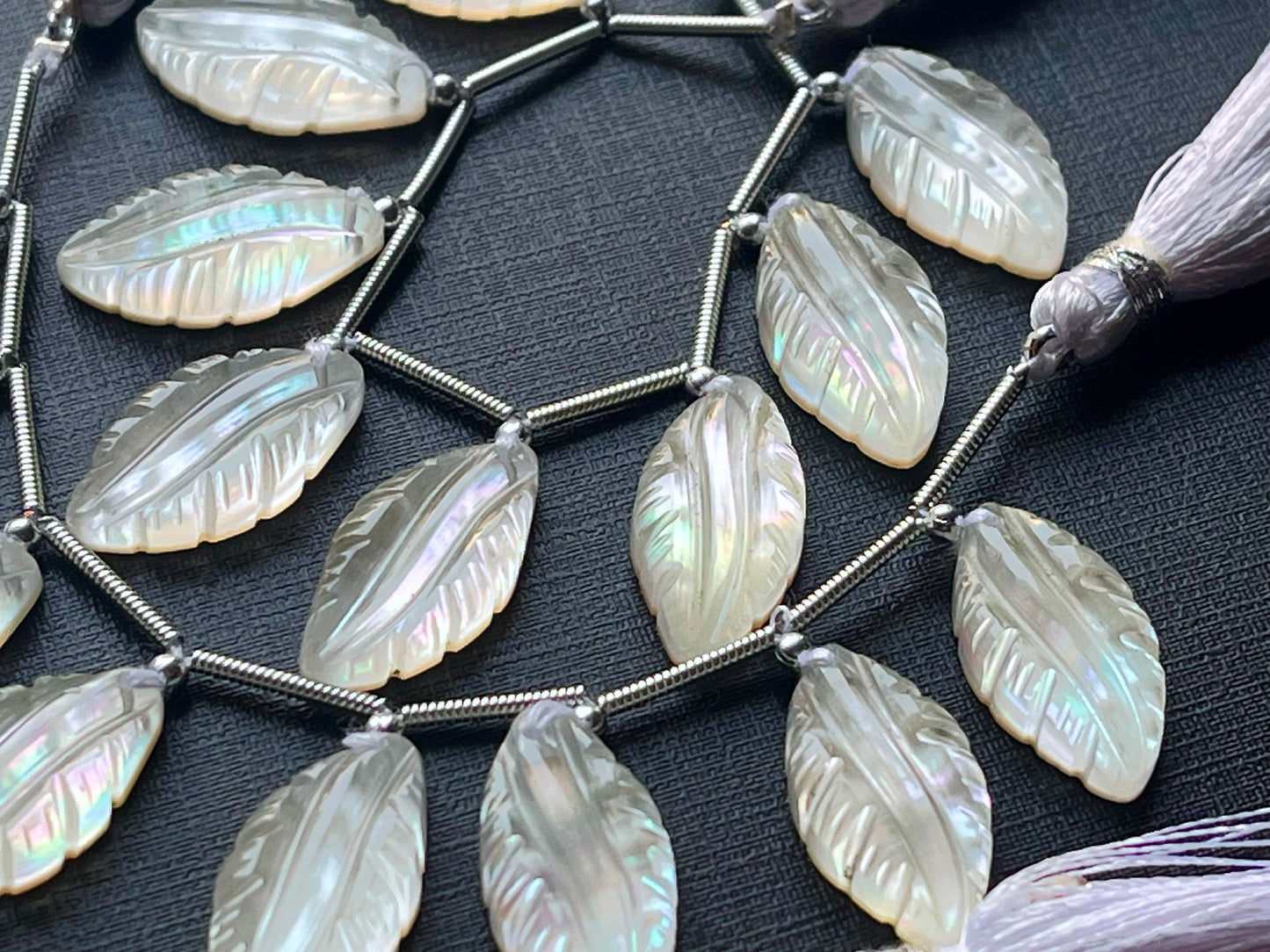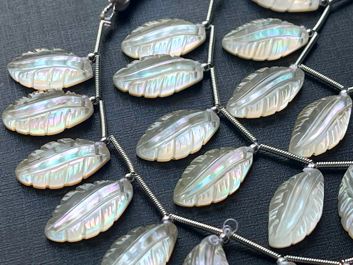 Natural Mother of Pearl and Crystal Doublet leaf carving beads, iridescence effect