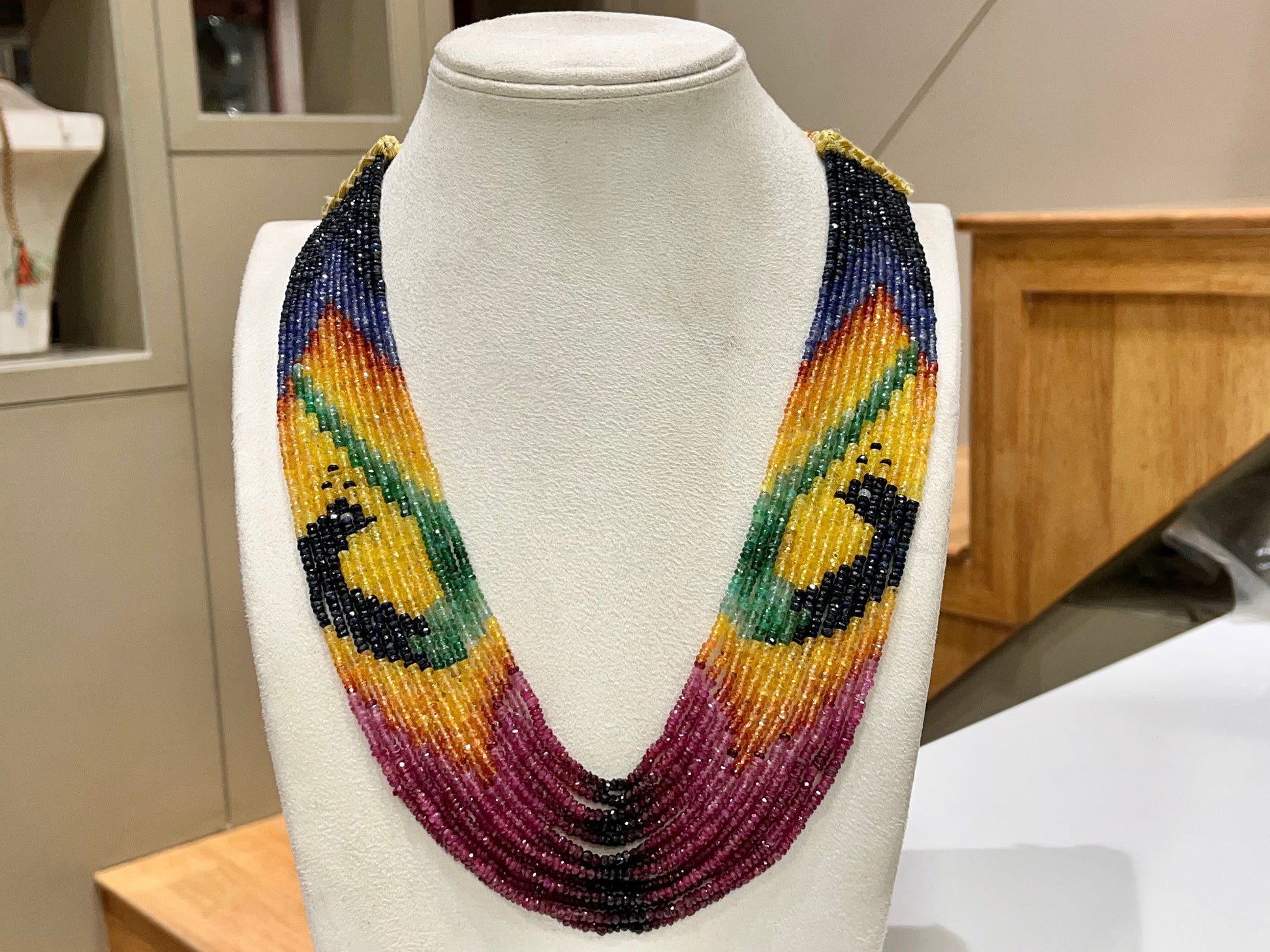 Natural Multi Sapphire Necklace, Ruby Sapphire Emerald Necklace, Multi Precious gemstone Healing Necklace, 13 Layering Necklace, 18 Inch
