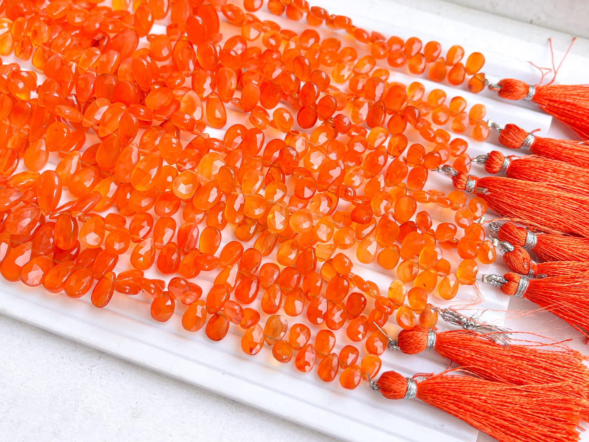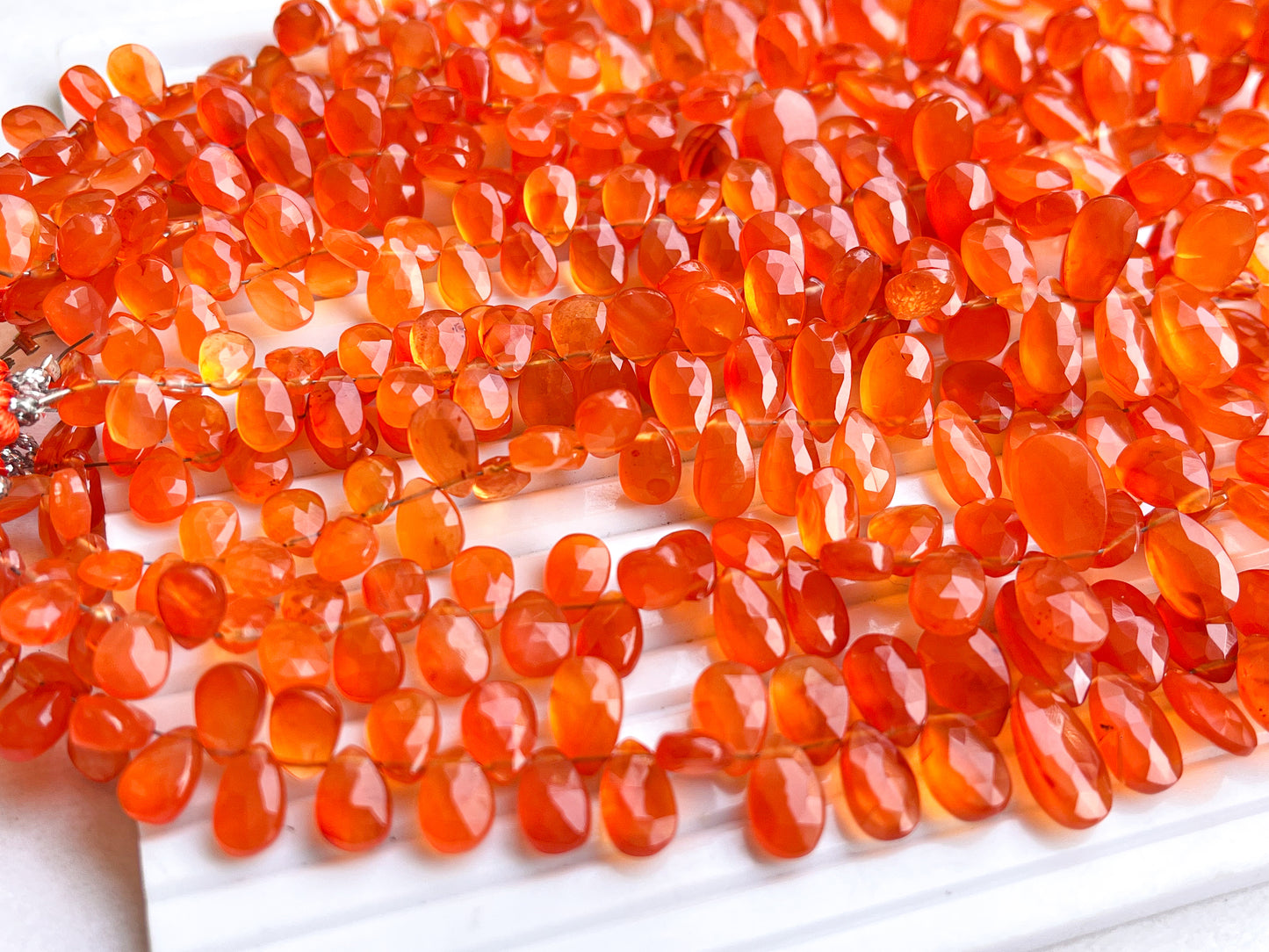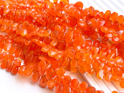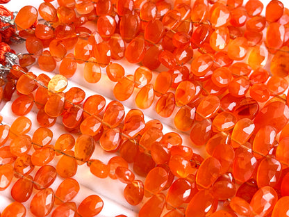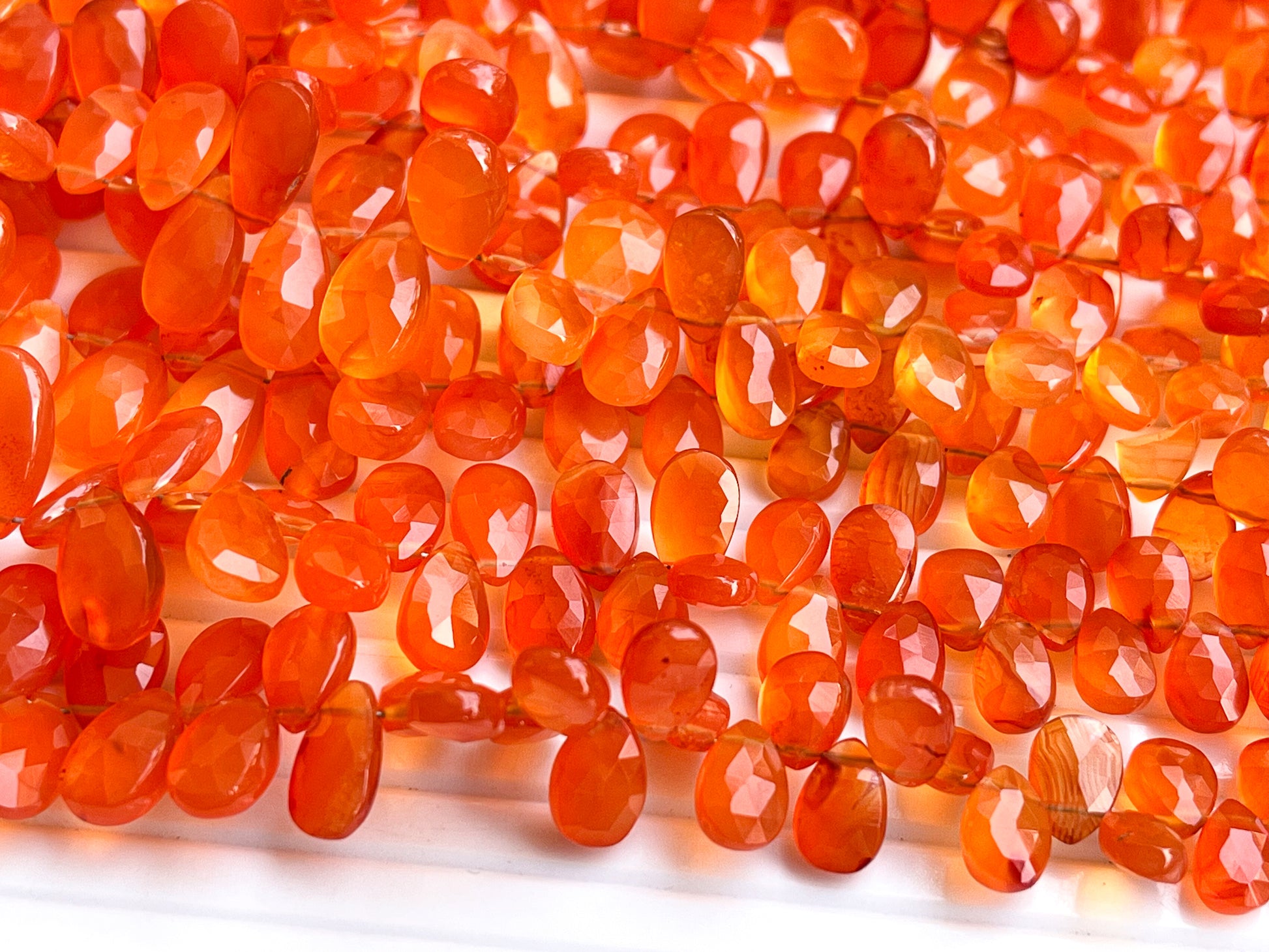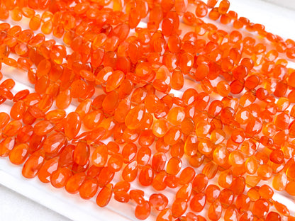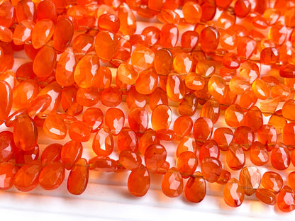 Natural Orange Carnelian Pear shape faceted briolette beads, Carnelian briolette, Carnelian beads for jewelry making, 5x7mm to 7x13mm 8 Inch