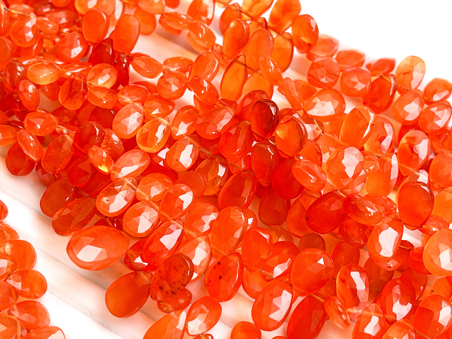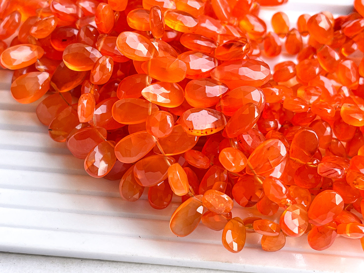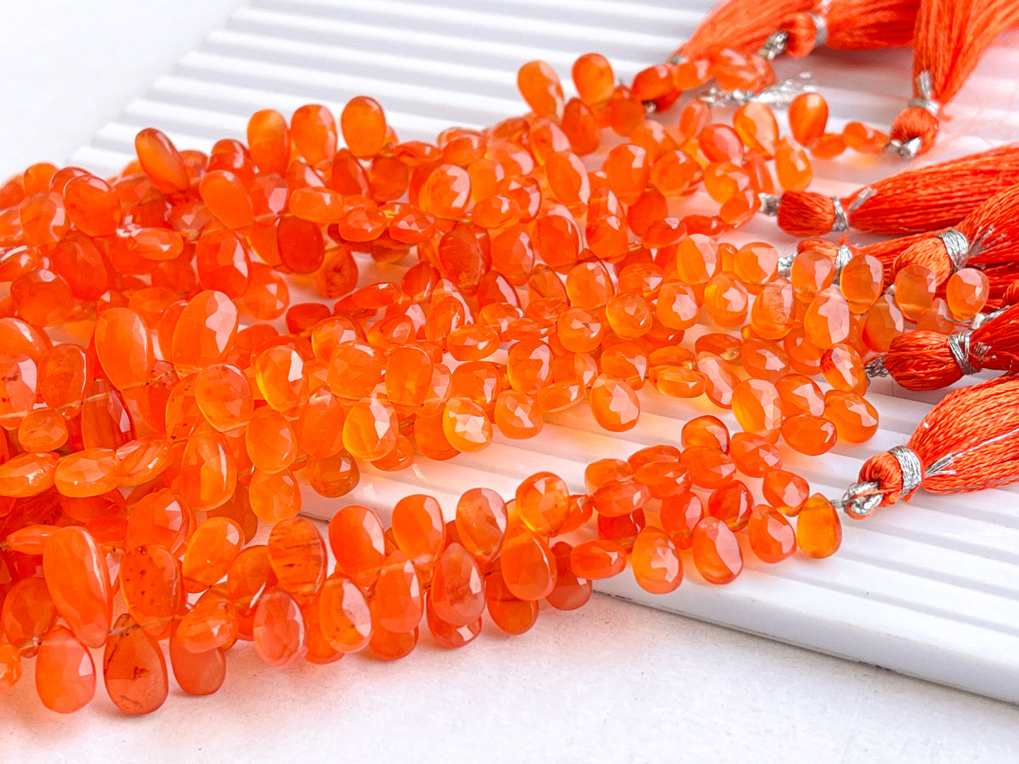 Natural Orange Carnelian Pear shape faceted briolette beads, Carnelian briolette, Carnelian beads for jewelry making, 5x7mm to 7x13mm 8 Inch
