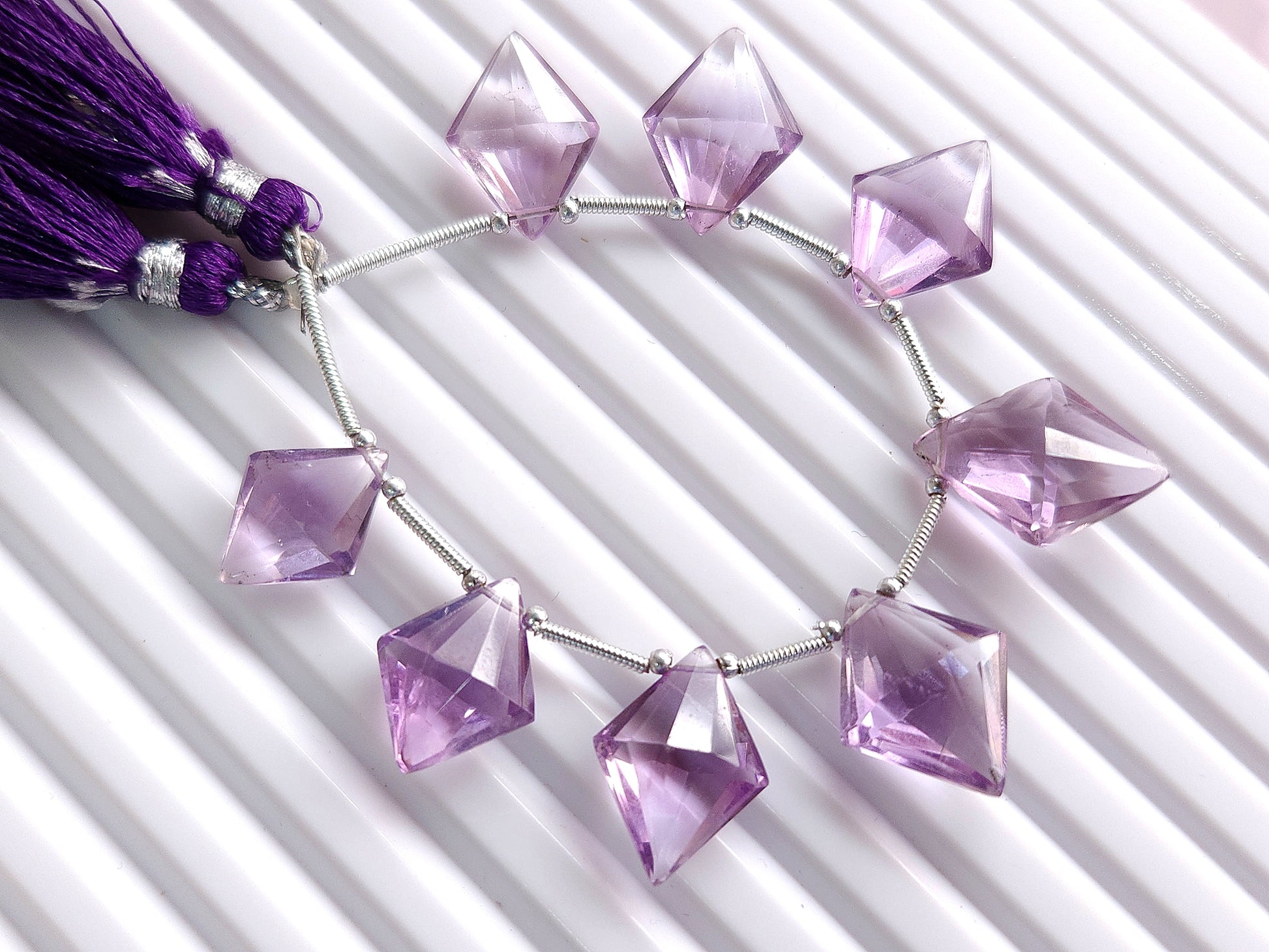 Natural Pink Amethyst Fancy Diamond shape Cut stone beads, Amethyst beads for jewelry making, Amethyst cut stone, Amethyst Beads, 8 Pieces