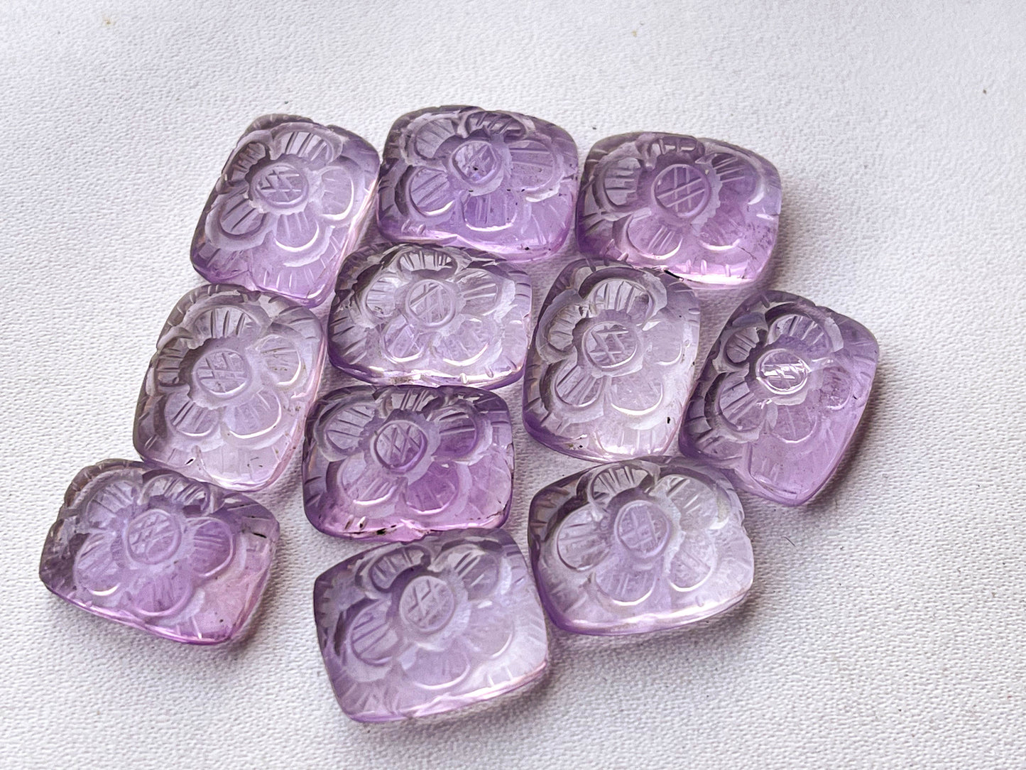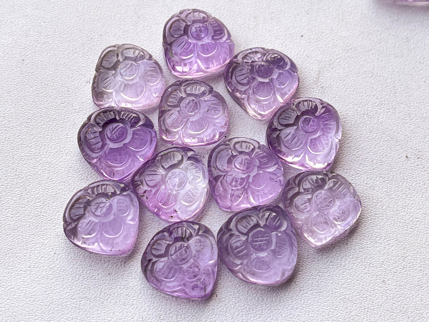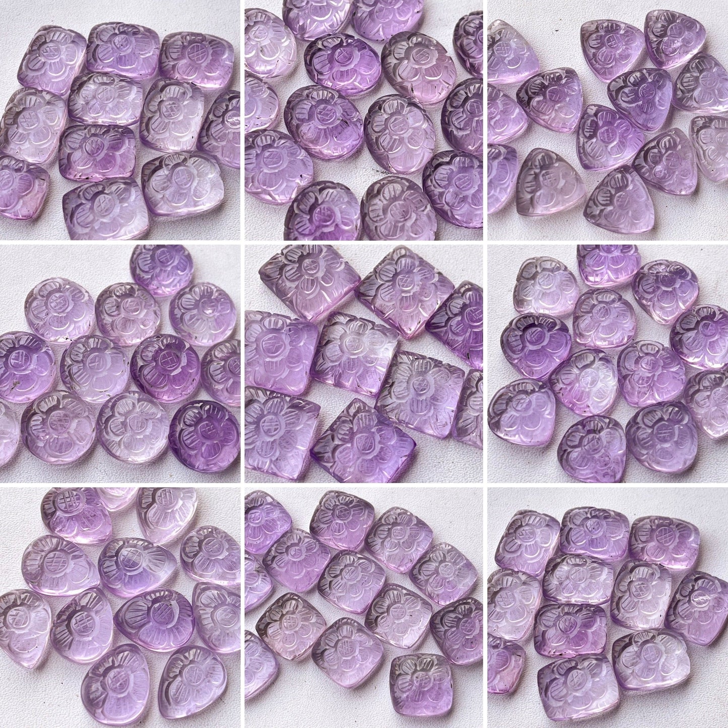 Natural Pink Amethyst flower carved Mix shape Cabs, Natural Pink Amethyst gemstone, Pink Amethyst carving, Loose Pink Amethyst carving, Pink Amethyst carving pair
