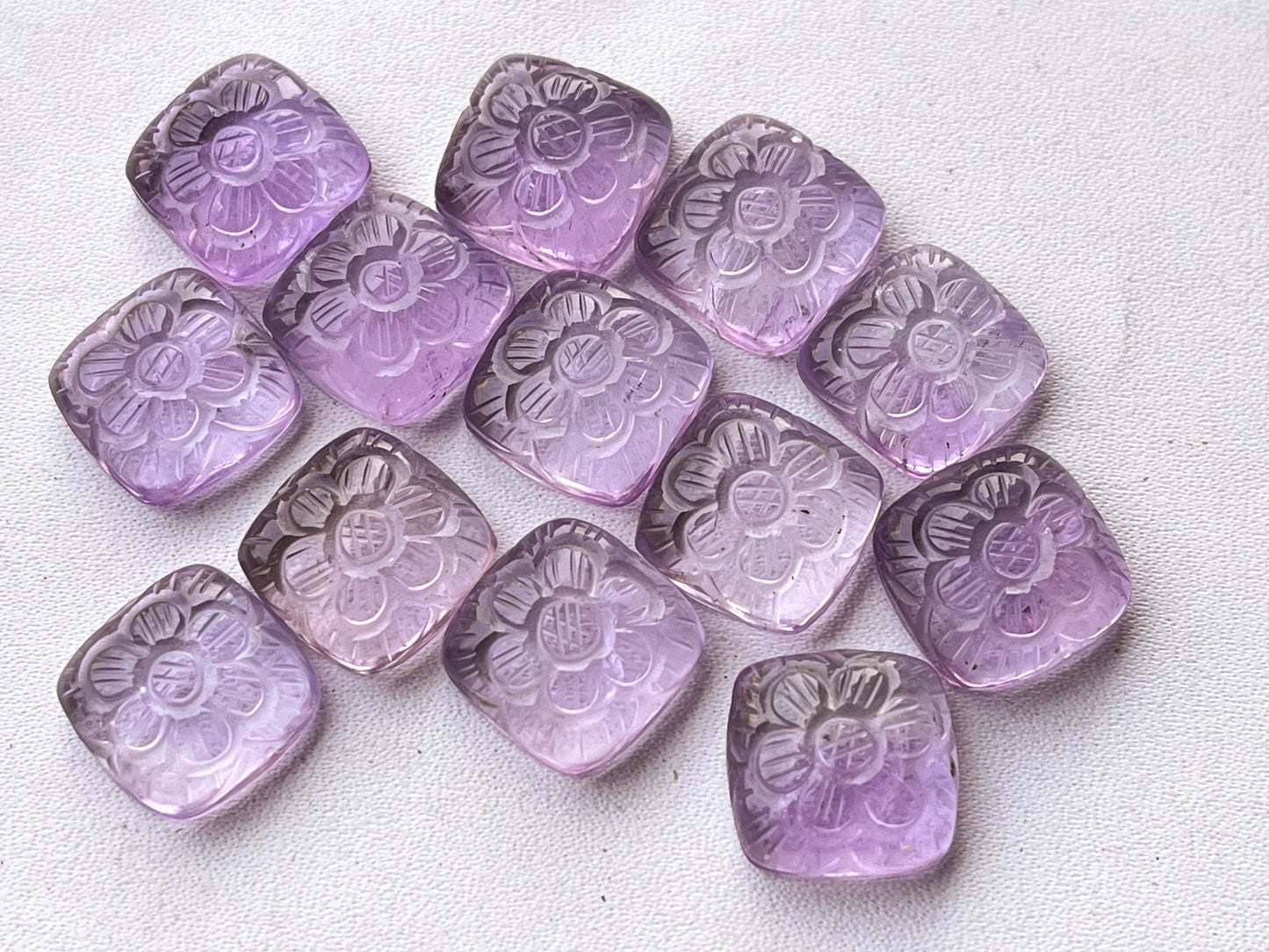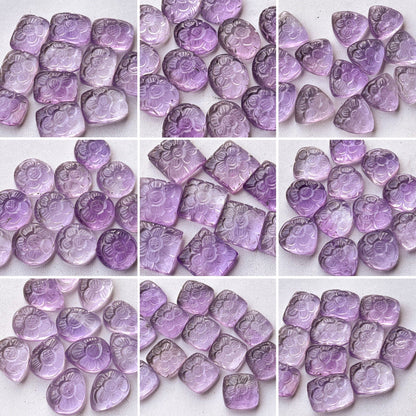 Natural Pink Amethyst flower carved Mix shape Cabs