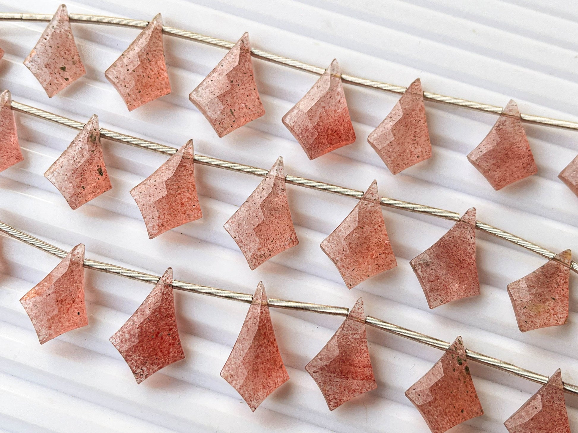 Natural Pink Strawberry Quartz fancy kite shape faceted briolette beads