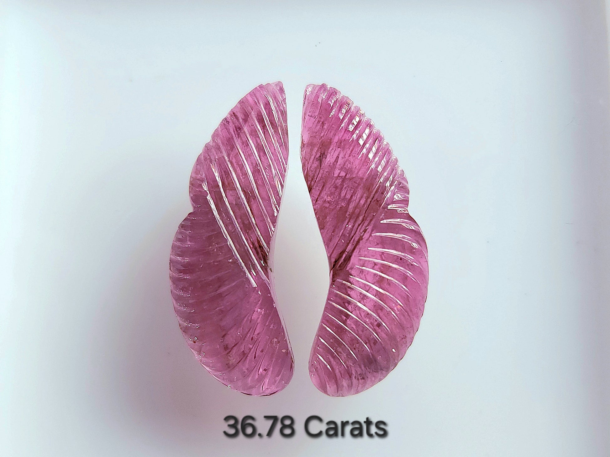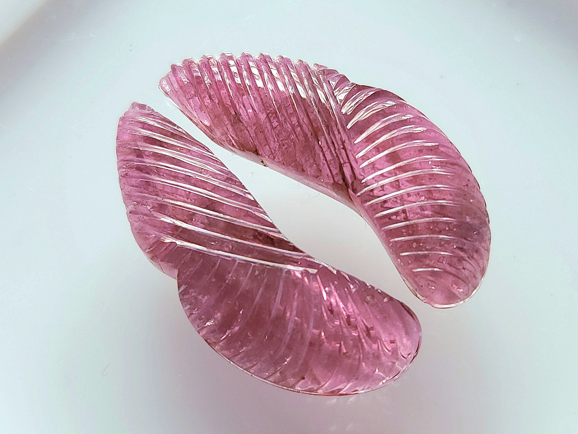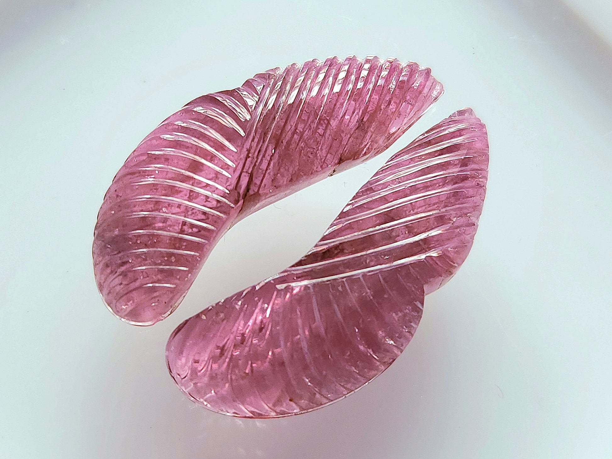 Natural Pink Tourmaline Gemstone Hand Carved Matching Pair