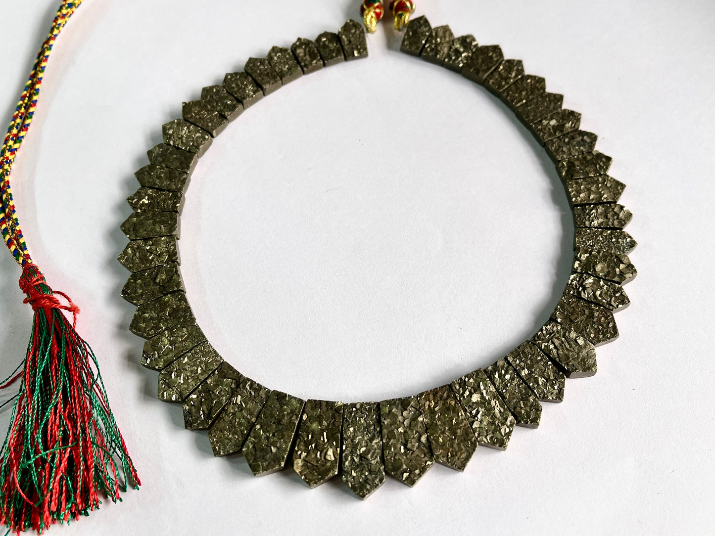 Natural Pyrite Bib Necklace, Cleopatra Egyptian Necklace, Fancy Beach Jewelry, Pyrite Choker Handmade Necklace, Adjustable tassel cord