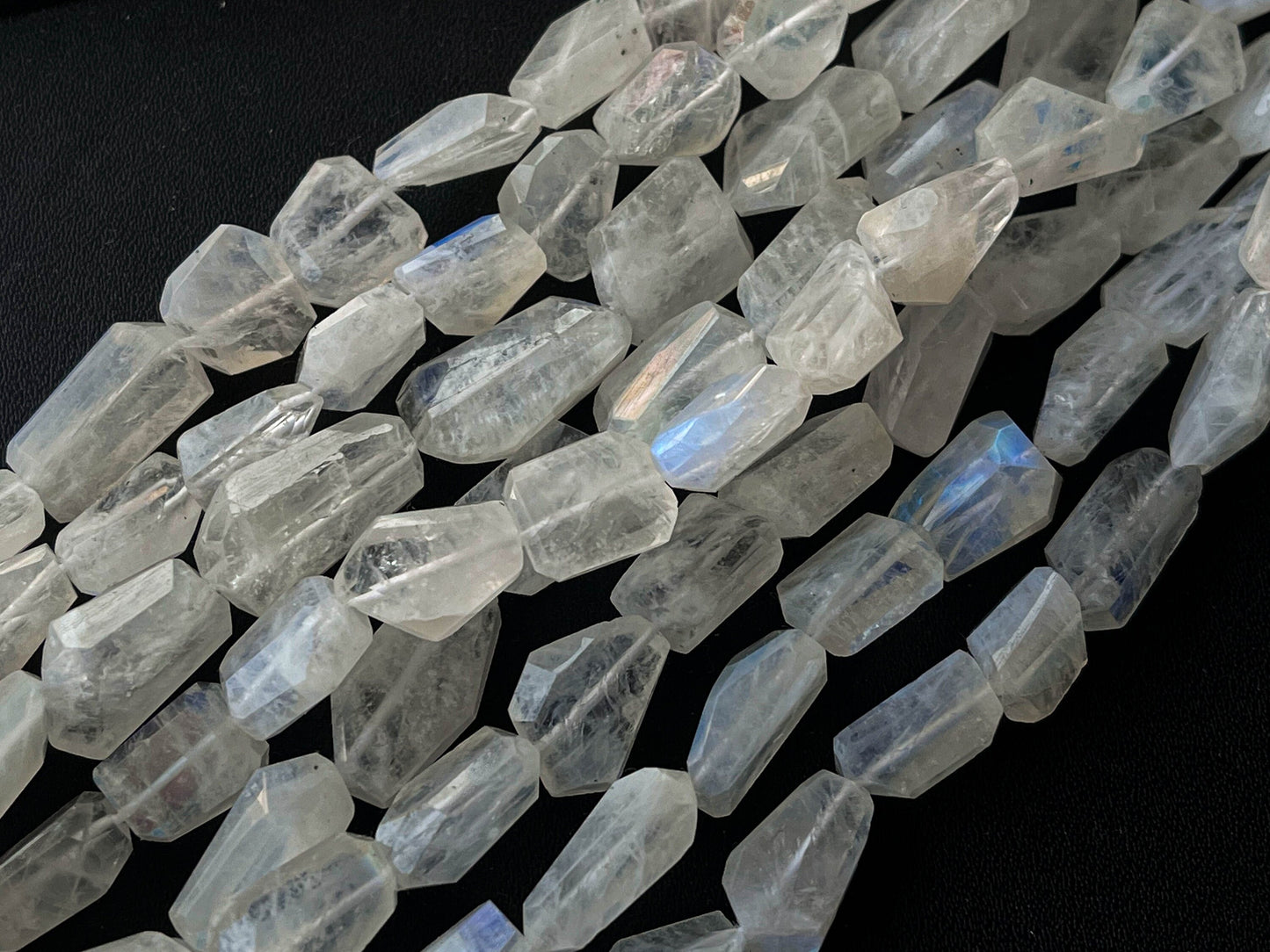 Natural Rainbow Moonstone Faceted Tumble Shape Beads, Rainbow Moonstone Beads for Jewelry making, Rainbow Moonstone nuggets, 16 Inch