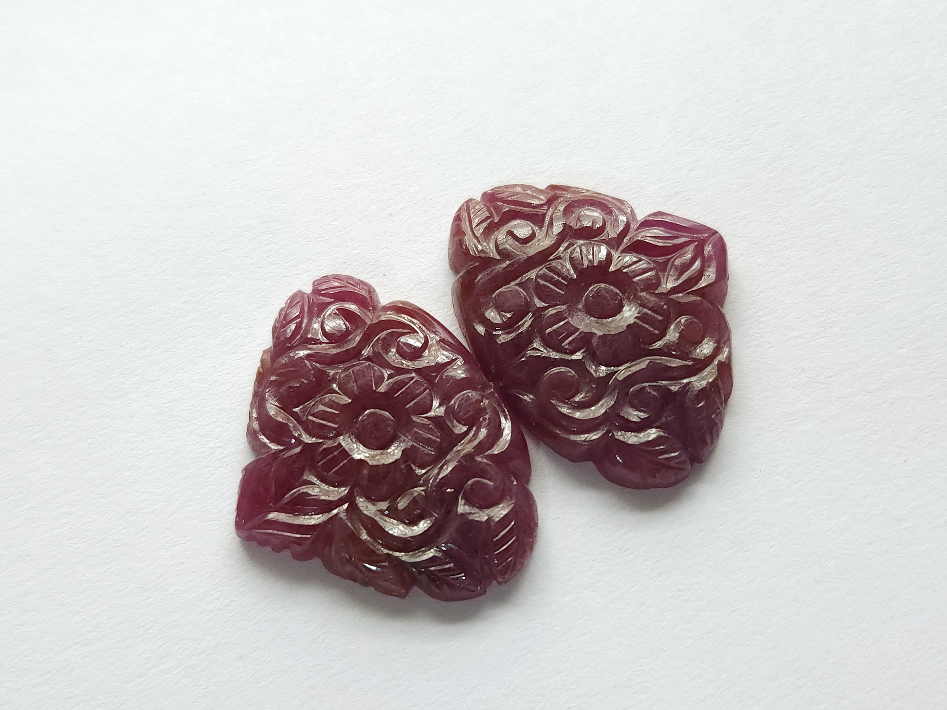 Natural Ruby Carved Pair – Carvings for Charms, Pendants & Jewelry Making