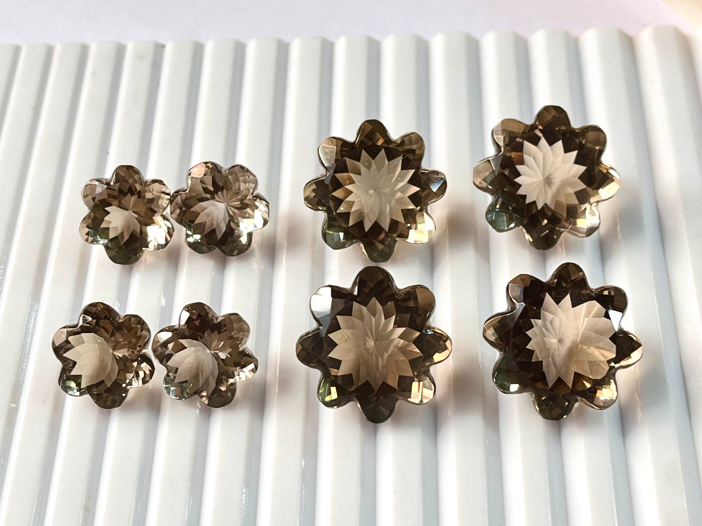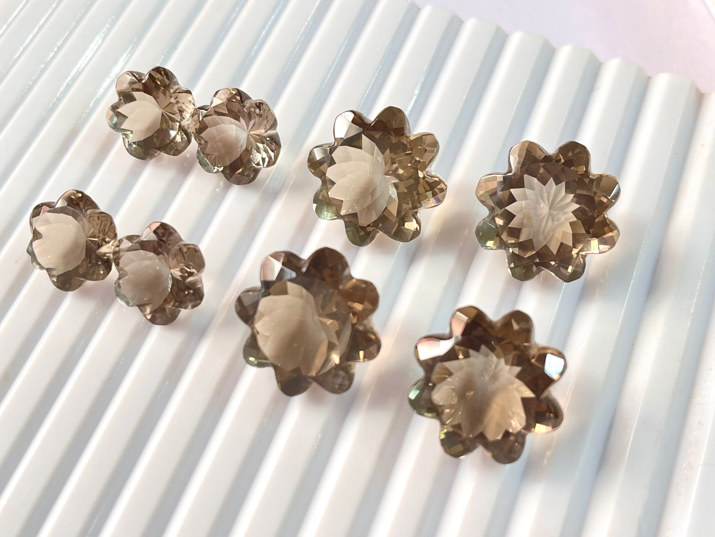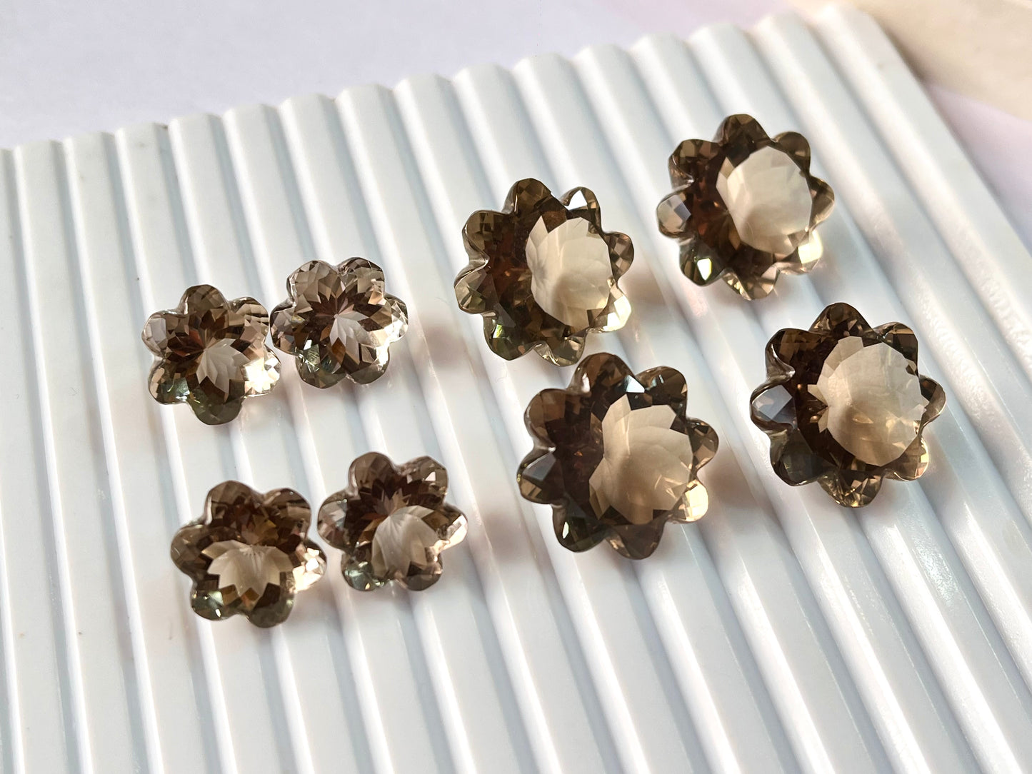 Natural Smoky Quartz Flower Shape Loose Cut Stone Pair
