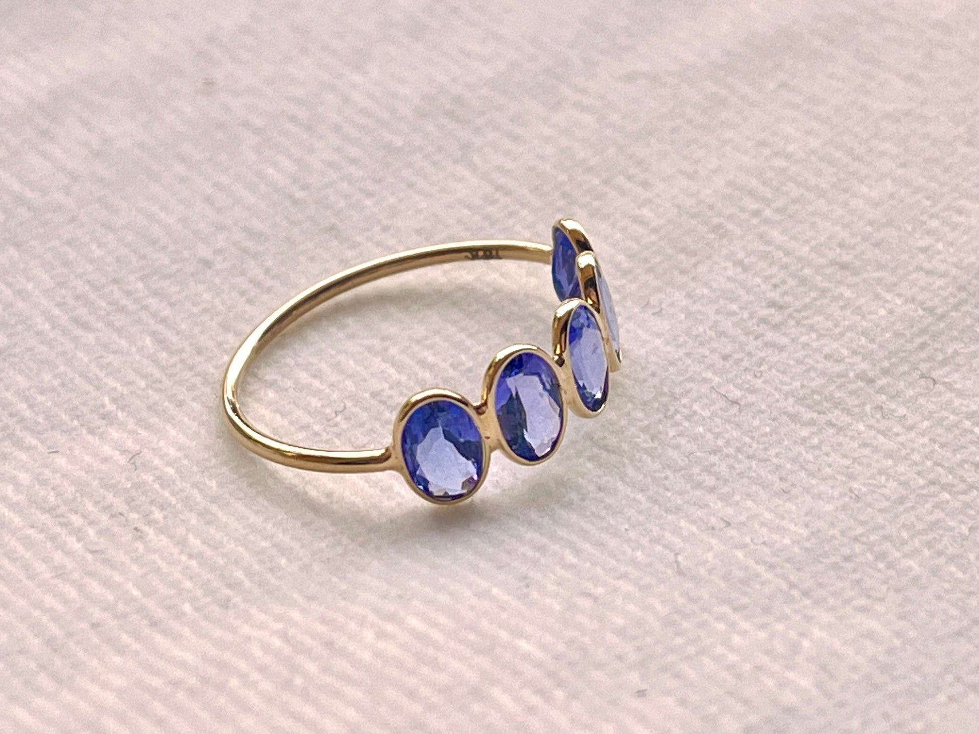 The unique color of tanzanite makes this ring stand out while still remaining versatile for everyday wear or stacking with other pieces. Designed in US size 6.5, it blends minimal design with fine jewelry craftsmanship.