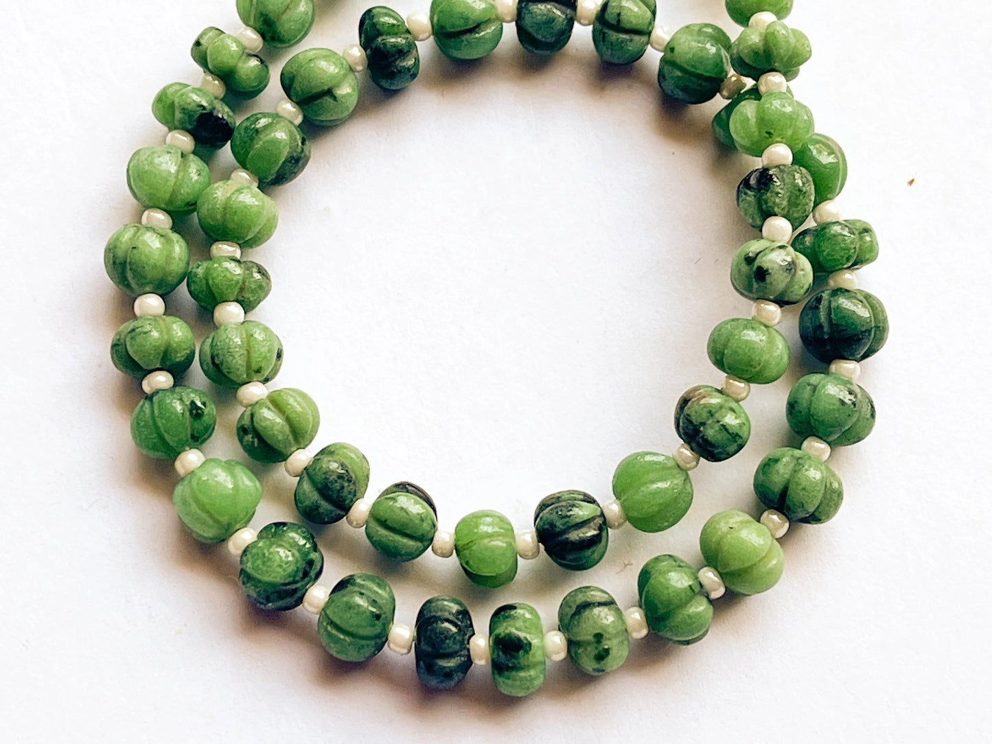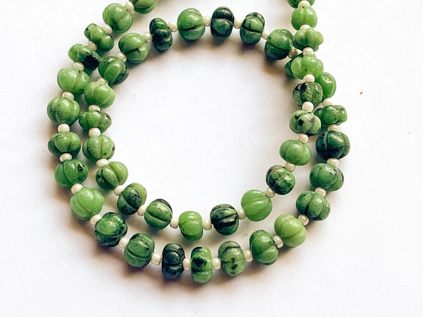 Zoisite Carved Melons Shape Beads, Natural Zoisite Gemstone Beads, Zoisite Carving Beads, Zoisite Beads, 5mm to 6mm, 10 Inch