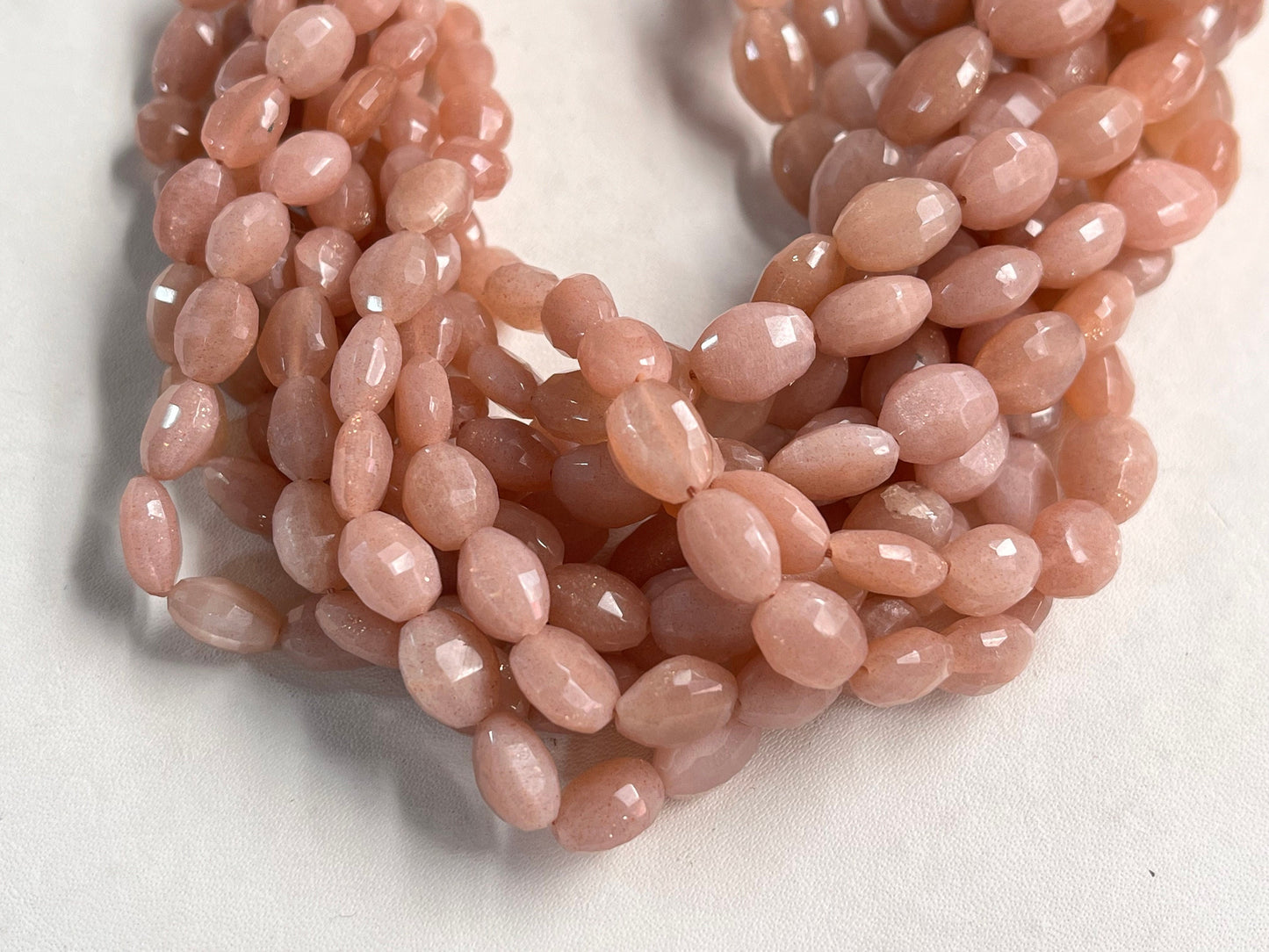 Peach Moonstone Oval Shape Step cut Beads, Natural Peach Moonstone gemstone, Peach Moonstone Beads, Peach Moonstone oval beads, 16 Inch