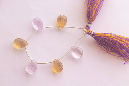 Pink Amethyst & Beer Quartz Pear shape Carving | 10x14mm | 6 Pieces | Natural Gemstone Beads for jewelry making | Beadsforyourjewelry