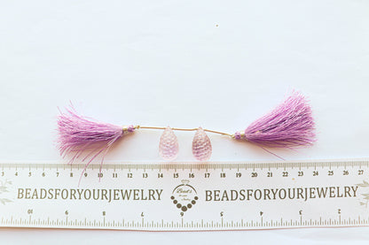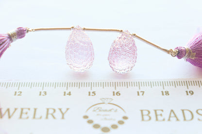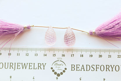 Pink Amethyst Honeycomb Carving Drops | 12x20mm | 2 Pieces / Pair | Natural Gemstone Beads for Jewelry Making | Beadsforyourjewellery