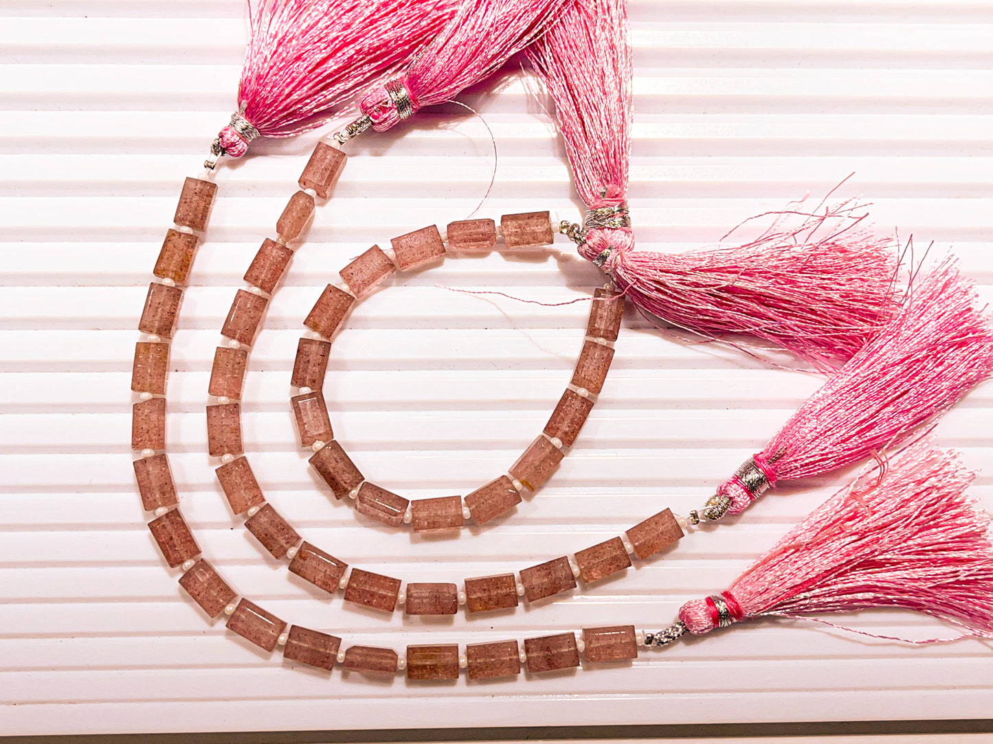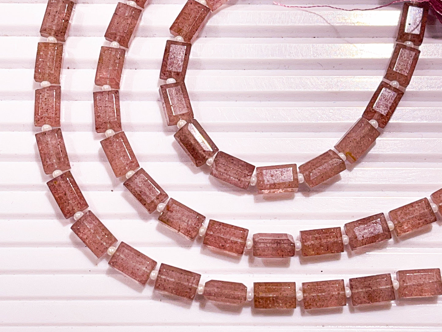 Pink Strawberry Quartz Baguette Shape Faceted Briolette Beads
