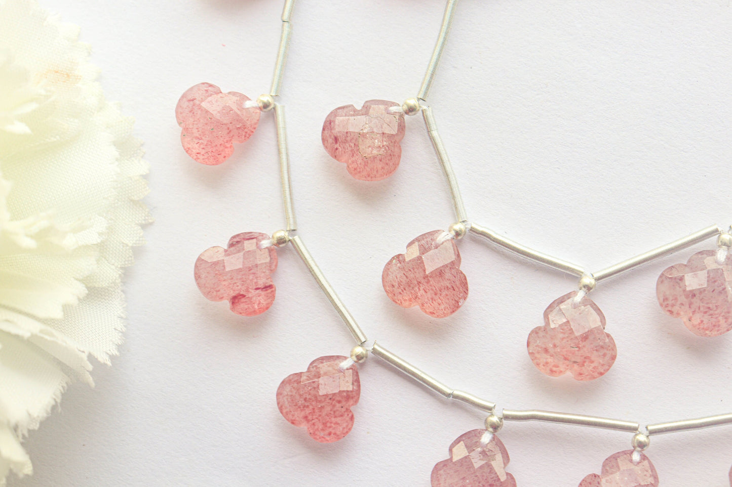 Pink Strawberry Quartz Flower shape Faceted Beads, 8 Inch String, Natural Gemstone, 10 Pieces, 11x11mm, Beadsforyourjewelry