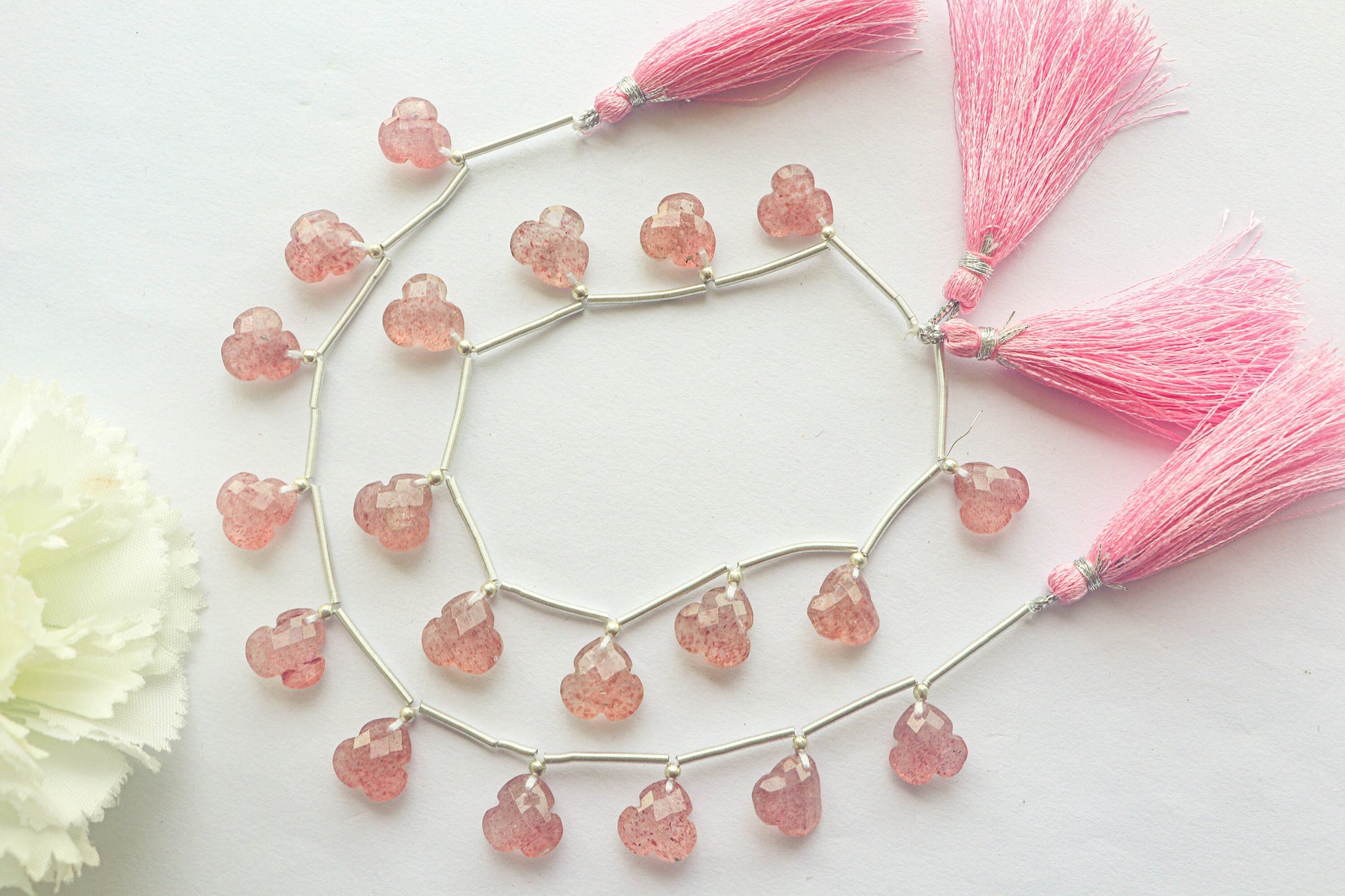 Pink Strawberry Quartz Flower shape Faceted Beads | 8 Inch String | Natural Gemstone | 10 Pieces | 11x11mm | Beadsforyourjewelry Gemstone : Pink Strawberry Quartz Beads Dimension : 11x11mm No. of Pieces - 10 Length : 8 Inch String