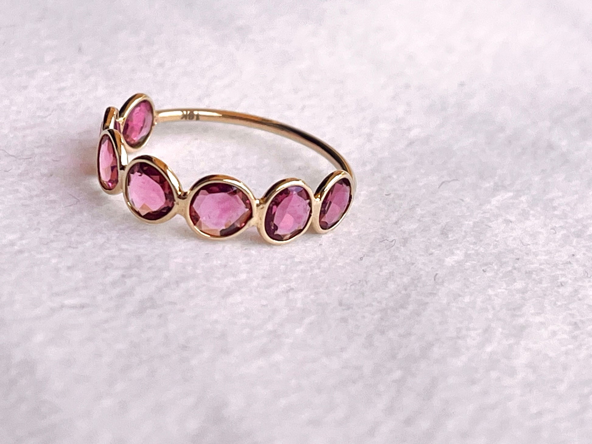Pink Tourmaline Gemstone Bezel Set 18K Solid Gold 7 US Ring