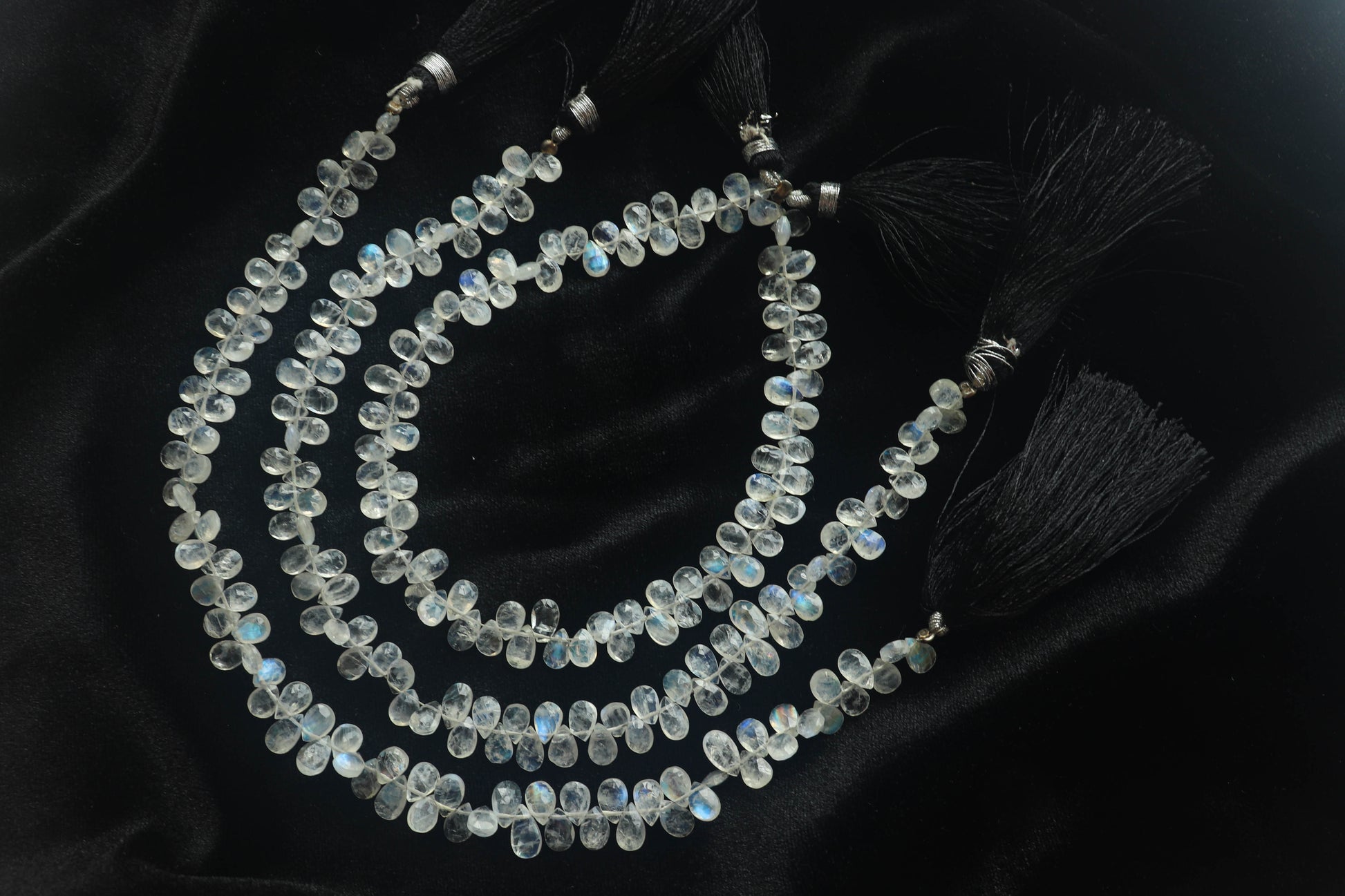 Rainbow Moonstone Faceted Briolette Pear Shape | 4x6mm | 9 inch Full Strand | Natural Rainbow Moonstone | Beadsforyourjewellery