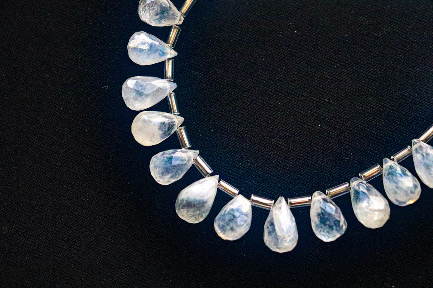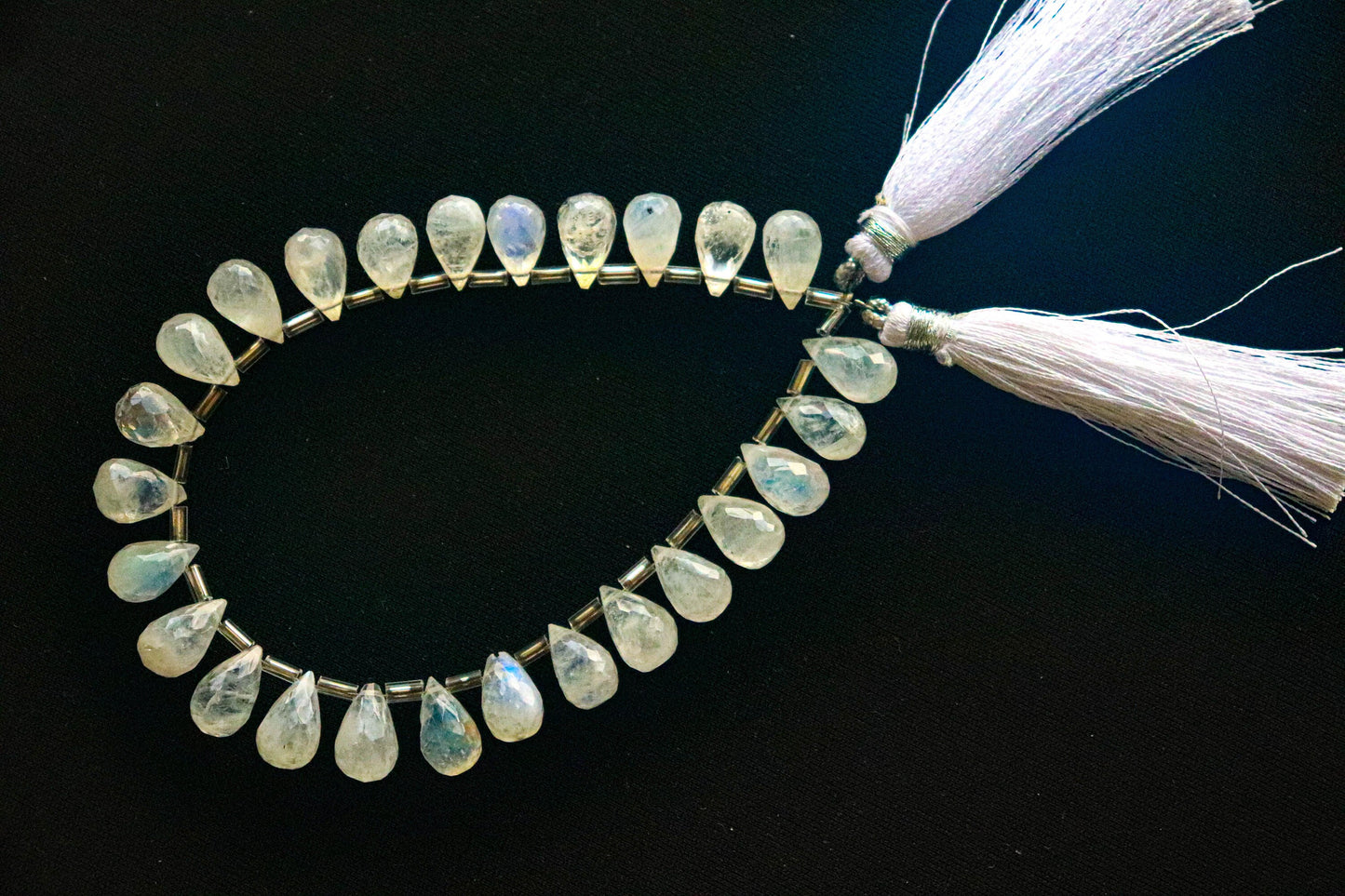 Rainbow Moonstone Faceted Drops | 8 Inch String | Natural Rainbow Moonstone Gemstone Beads for Jewelry making | Beadsforyourjewelry
