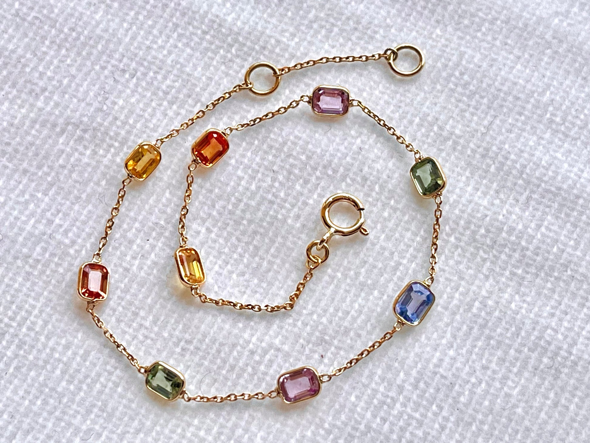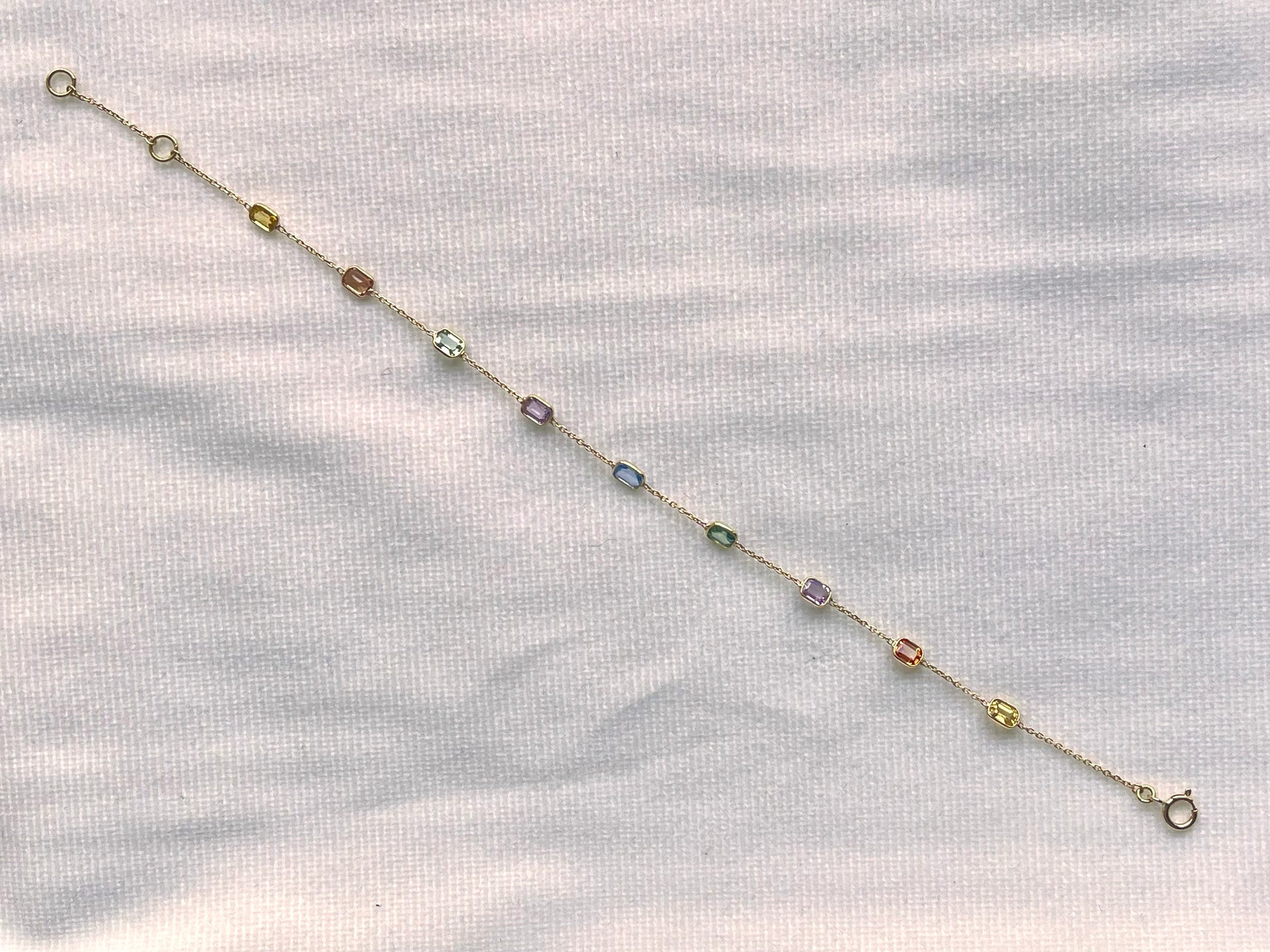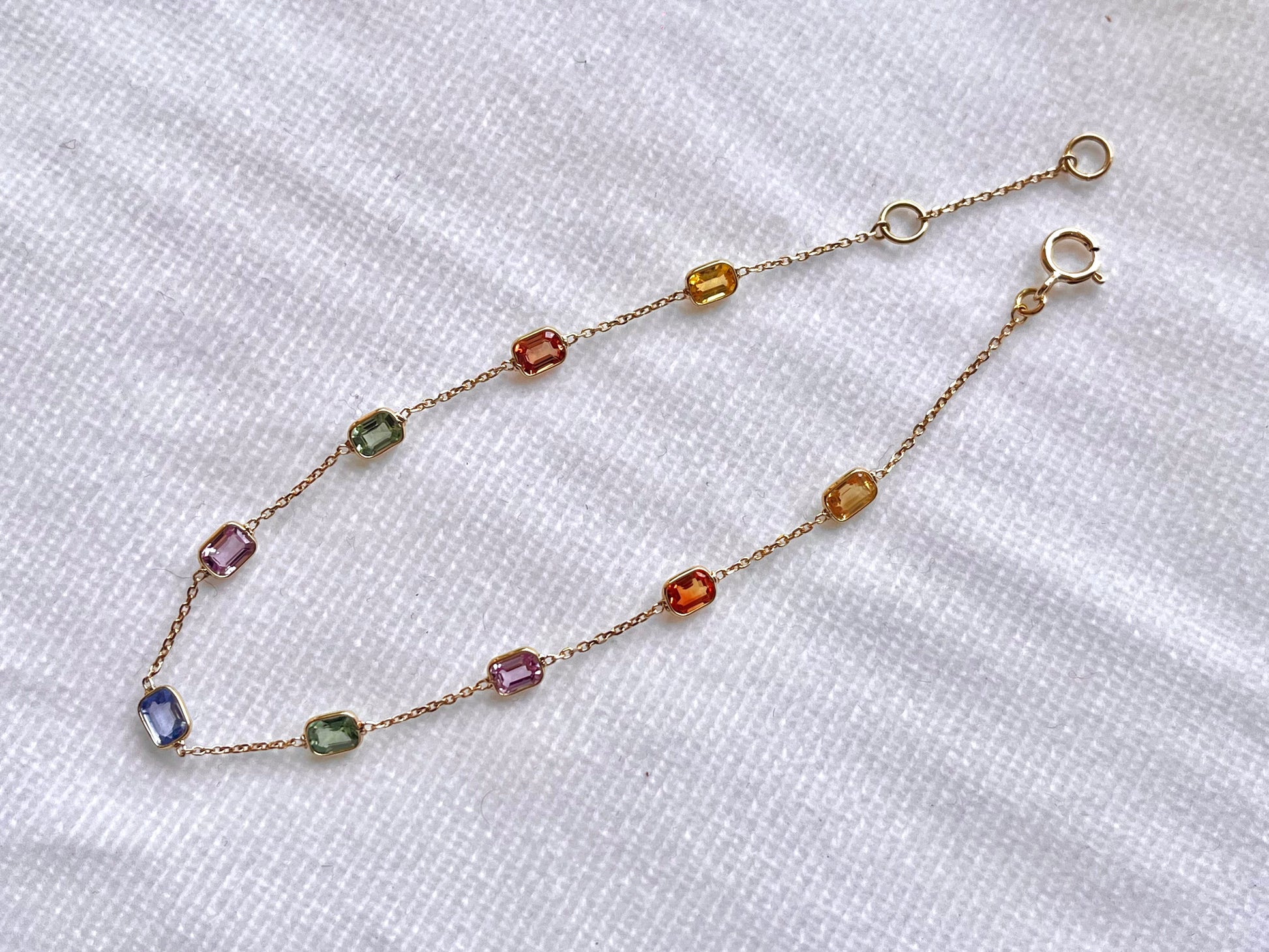 The multicolor sapphires bring a balanced mix of tones, making this bracelet versatile for daily wear or layering with other pieces. Its lightweight design ensures comfort while maintaining a refined fine jewelry finish.