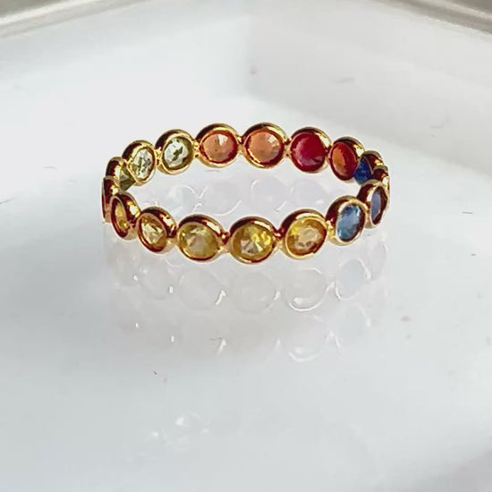 Rainbow Sapphire Gemstone Colourful Eternity Ring
