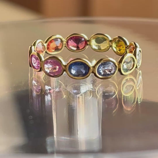 Rainbow Sapphire Gemstone Oval shape Colourful Eternity Ring