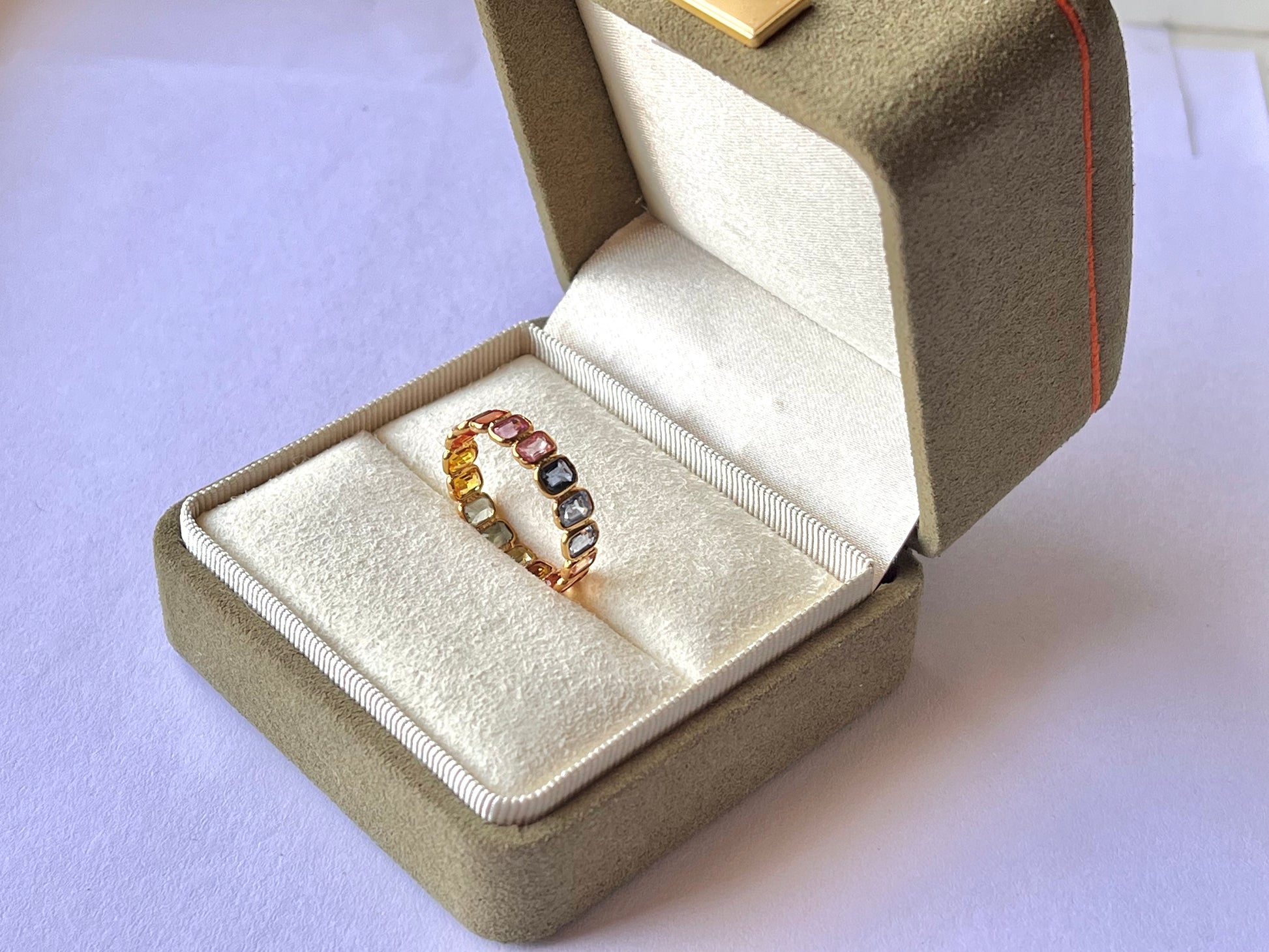 Rainbow Sapphire Octagon Ring