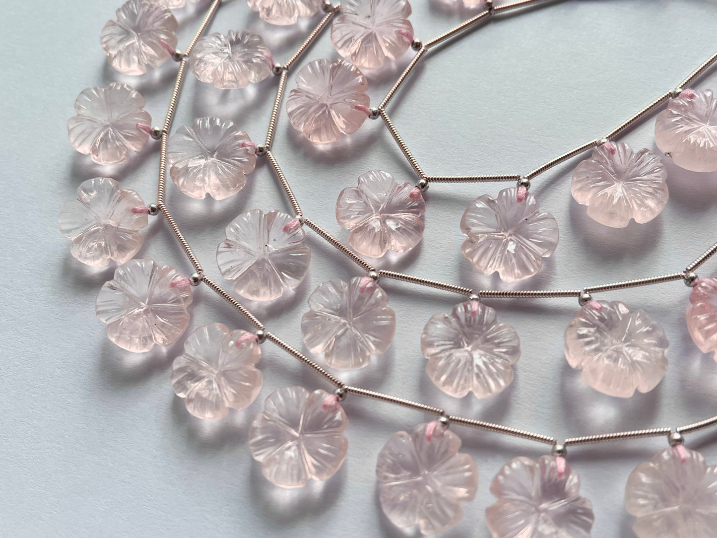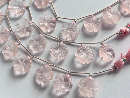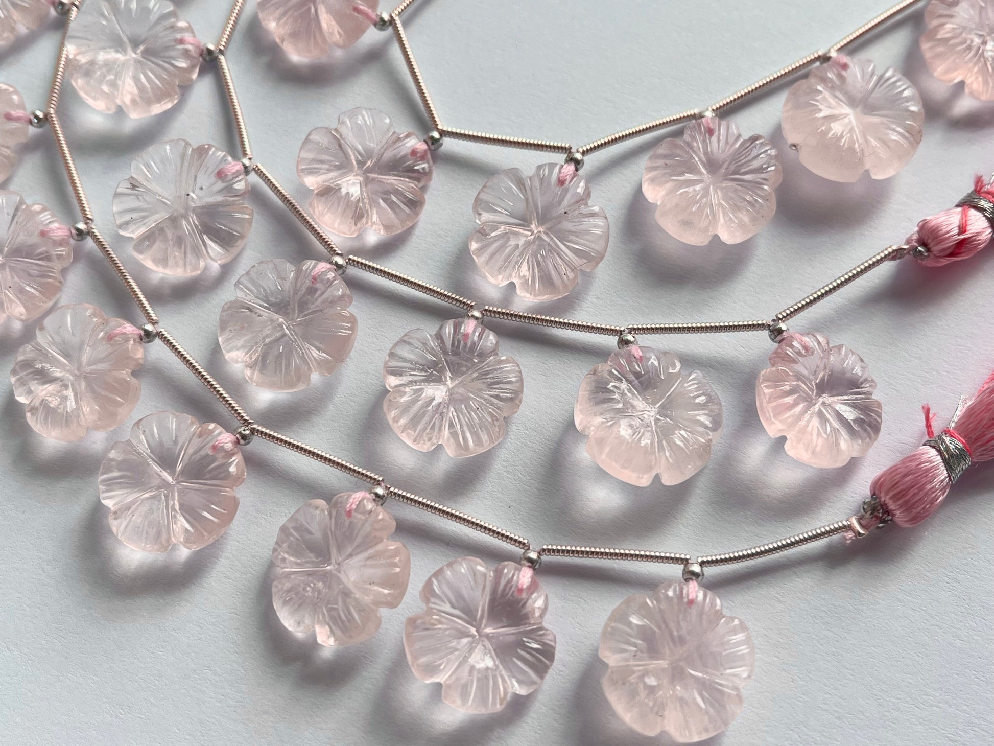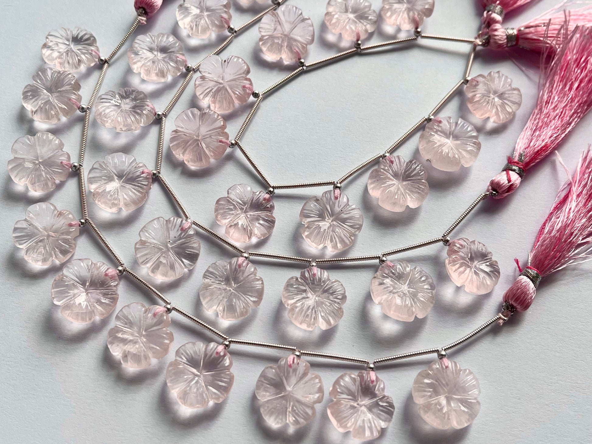 Natural Rose Quartz flower carved beads, Rose quartz gemstone beads, Rose quartz carved beads, Rose quartz carving beads, 15x15mm, 10 Pieces