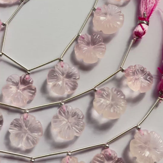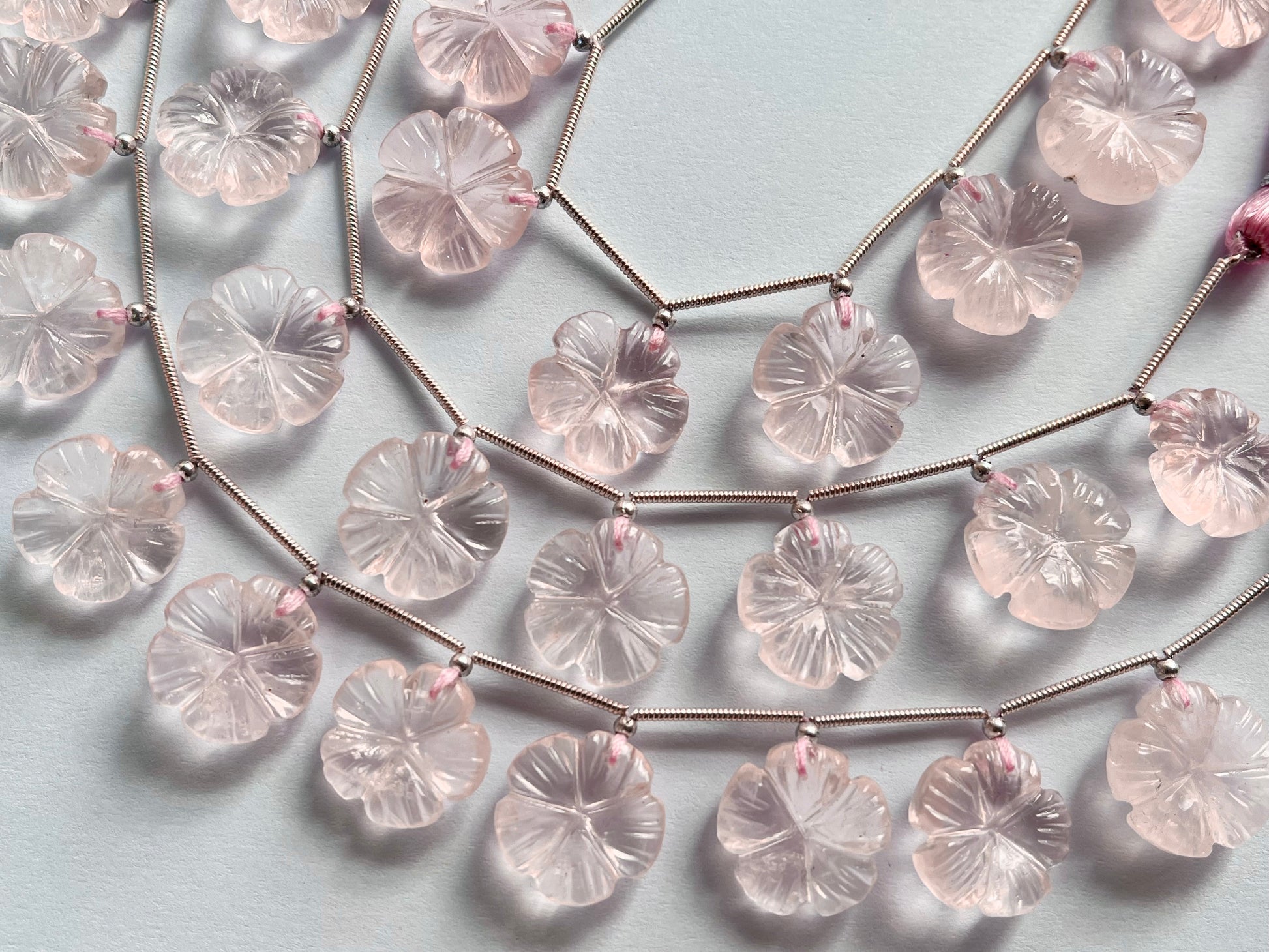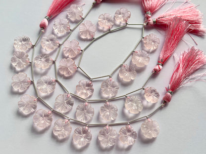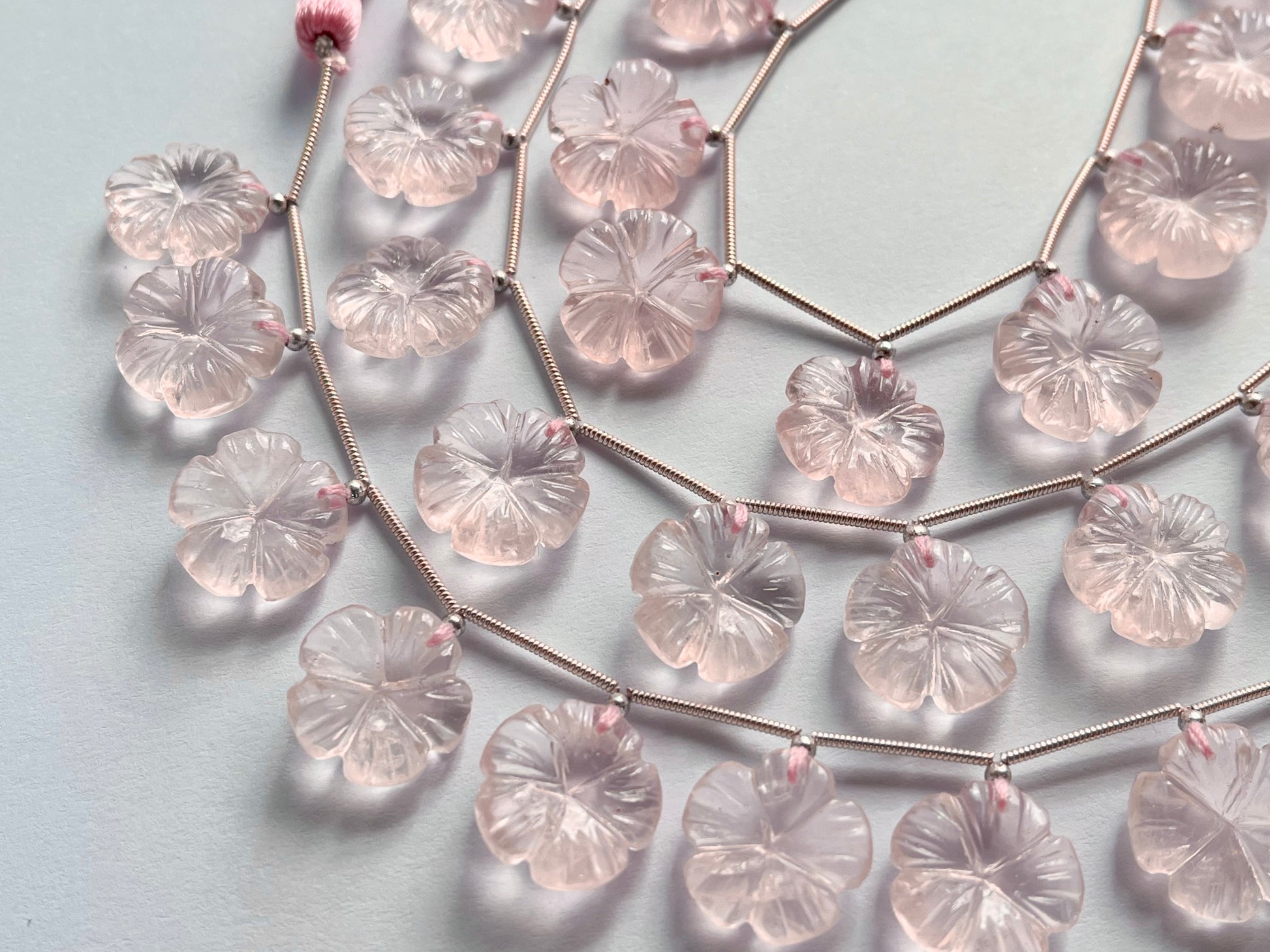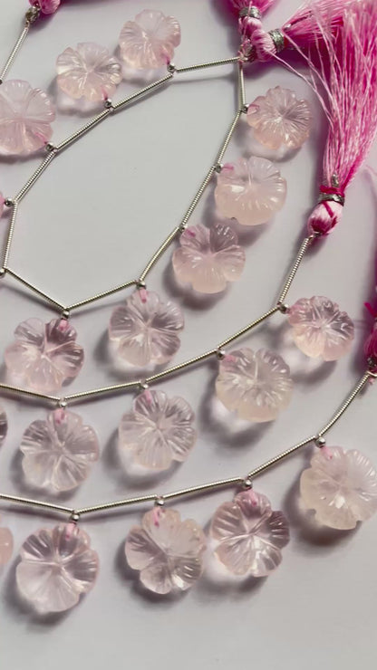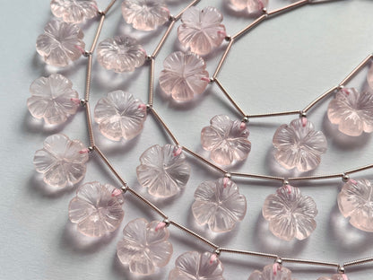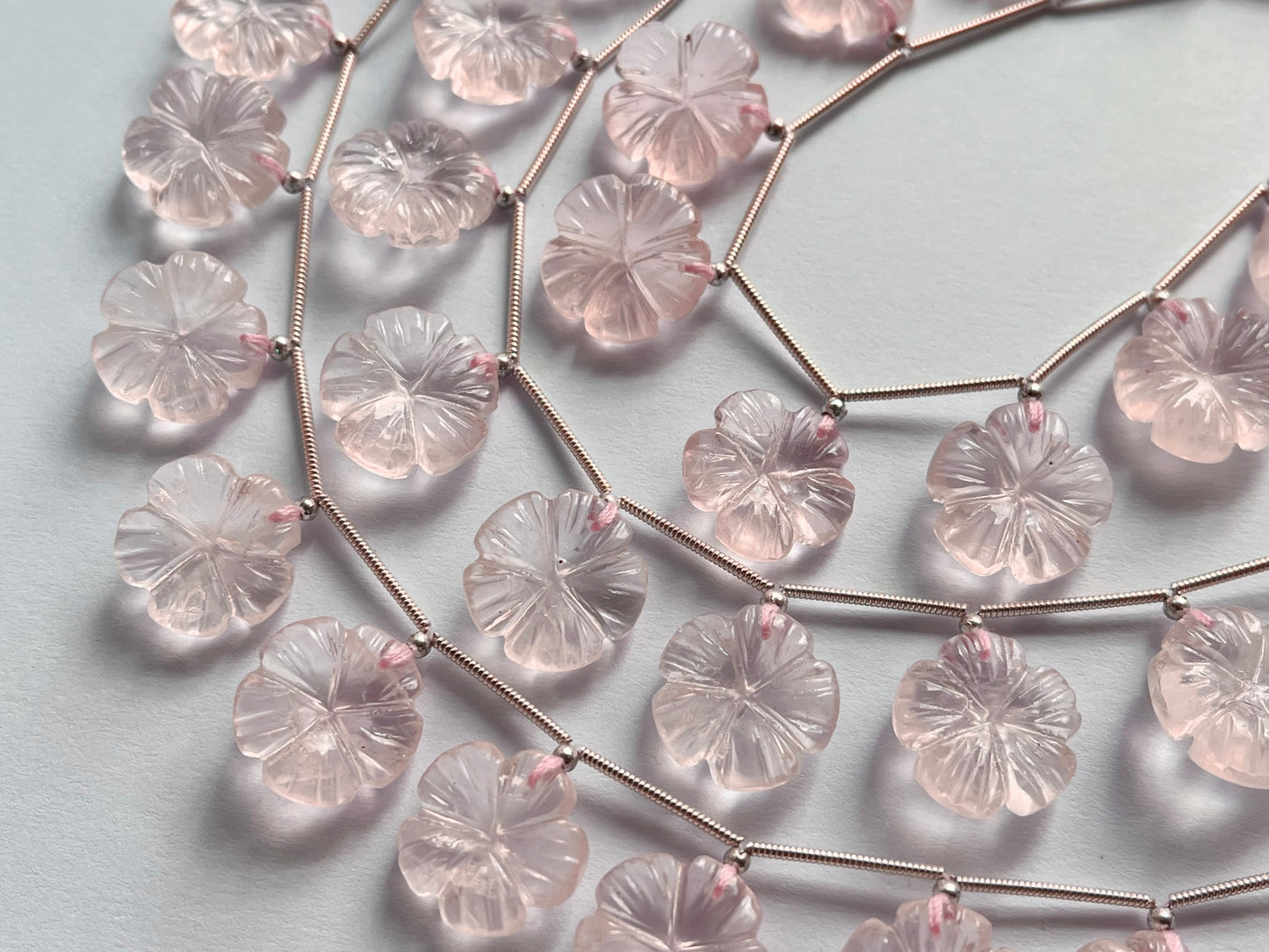 Natural Rose Quartz flower carved beads, Rose quartz gemstone beads, Rose quartz carved beads, Rose quartz carving beads, 15x15mm, 10 Pieces