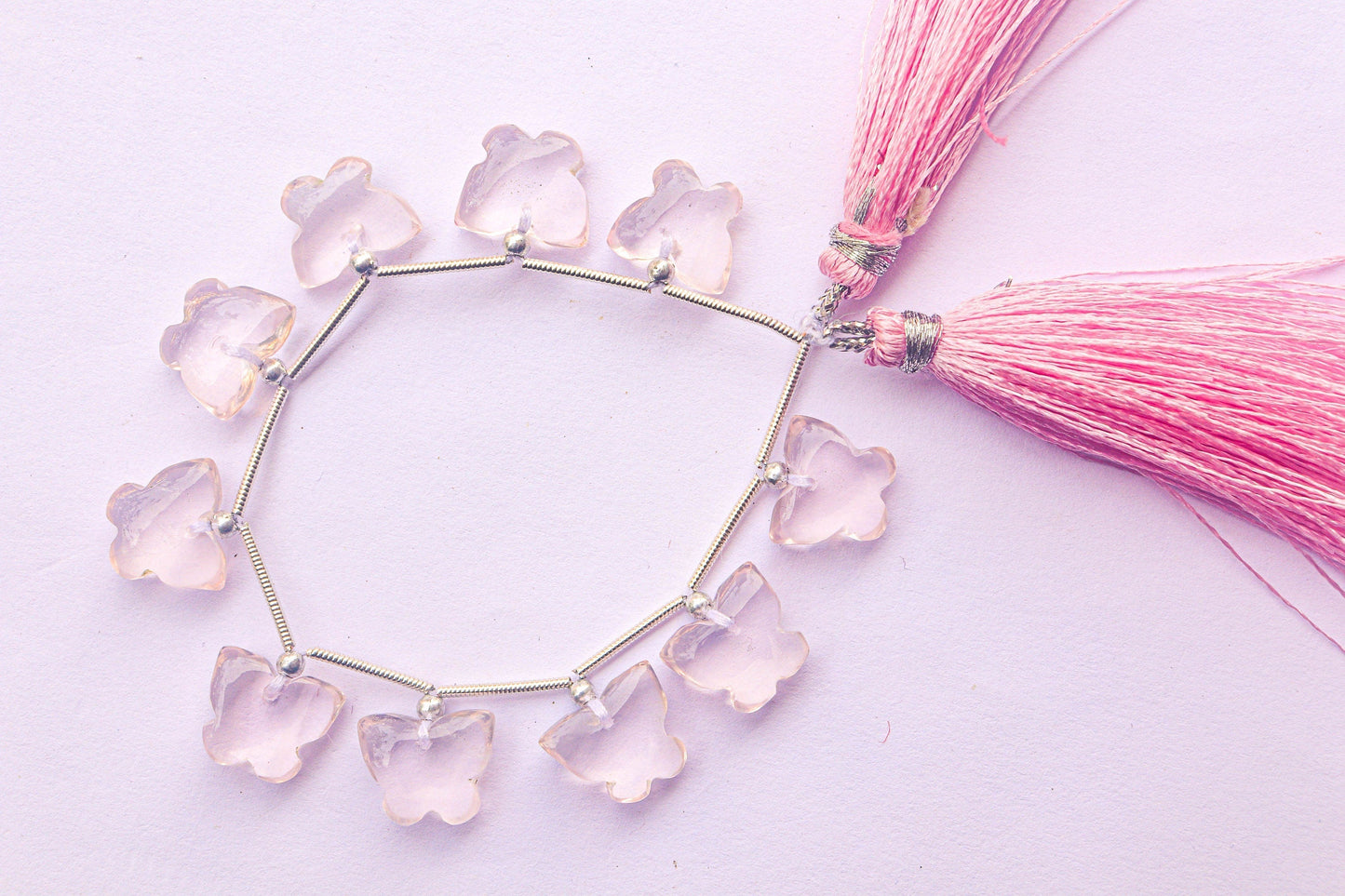 Rose Quartz Smooth Butterfly Shape Beads | 9x11mm | 10 Pieces | Natural Gemstone Beads for Jewelry Making | Beadsforyourjewellery