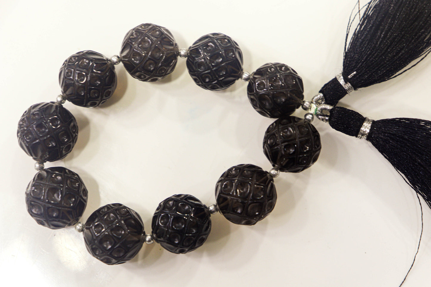 Smoky Quartz Beads Fancy Carved | 15mm | 10 Pieces Full Strand | Natural Gemstone beads for Jewelry making | Beadsforyourjewellery