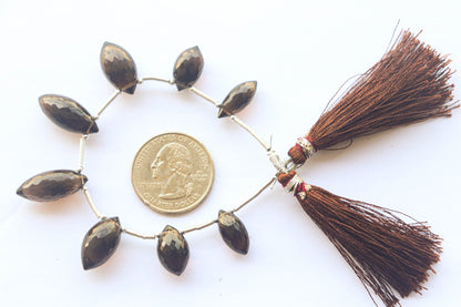 Smoky Quartz Beads Olive Shape Faceted Briolette | 8x16mm to 9x20mm | 8 Pieces String | Natural Gemstone | Beadsforyourjewellery | 935