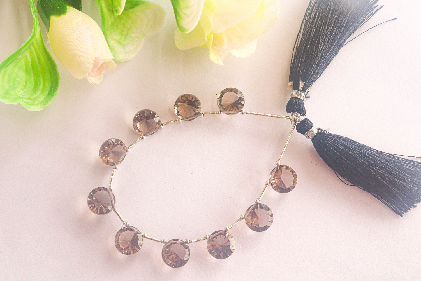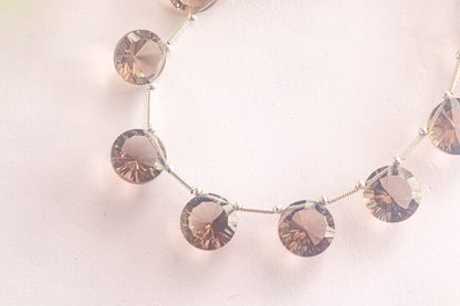 Smoky Quartz Concave cut Round Shape Beads