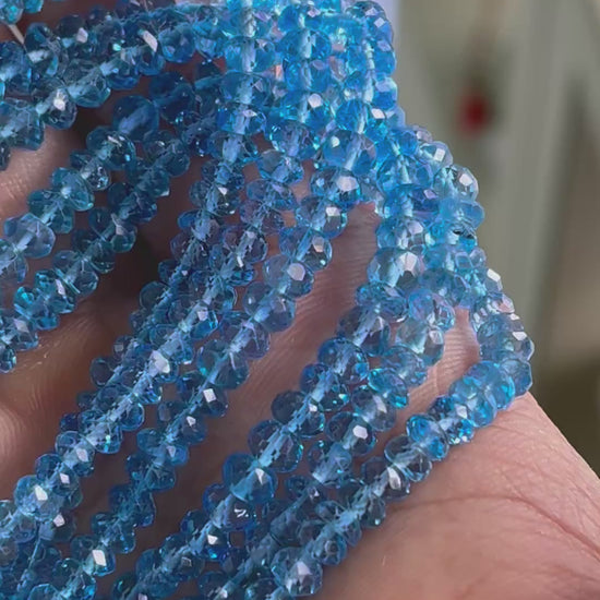 Swiss Blue Topaz Rondelle Shape Faceted Beads